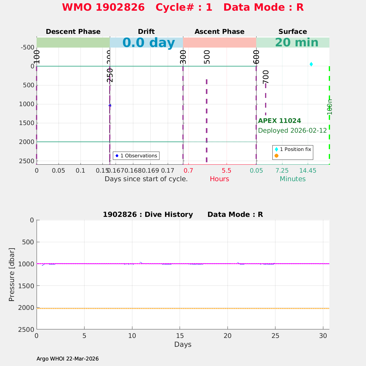 | WMO: #1902826 DAC: aoml PI: STEPHEN RISER APEX: #11024 SBE41CP: #20800 DRUCK_2900PSIA: #12428341 Altimeter Comparison (IFREMER) EuroArgo Link | n/a | n/a | ![]() |