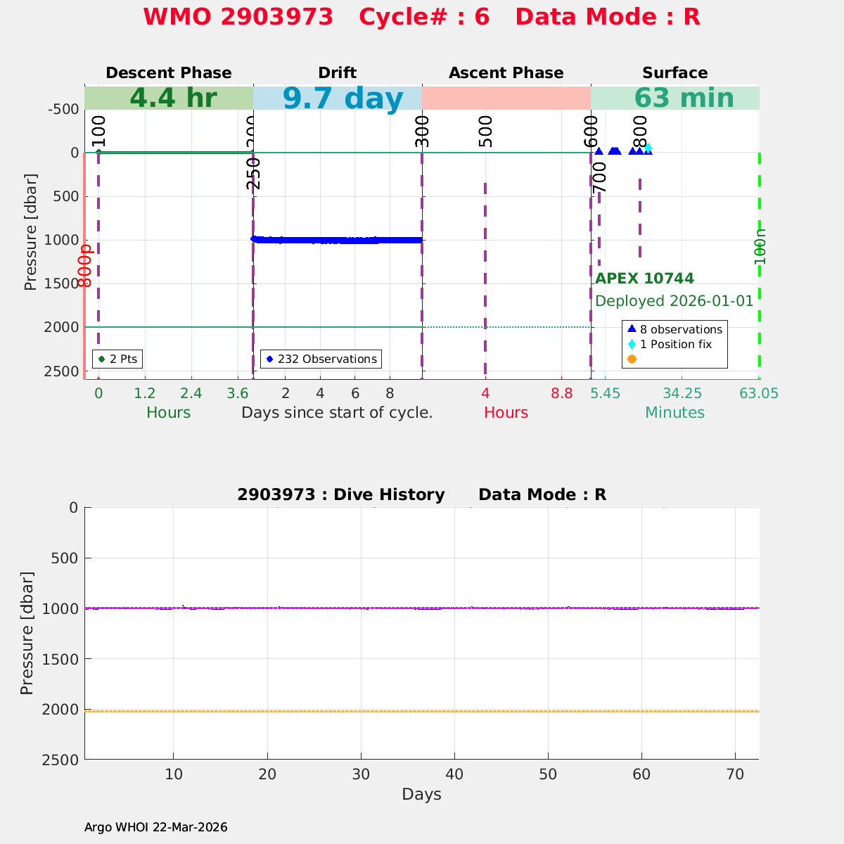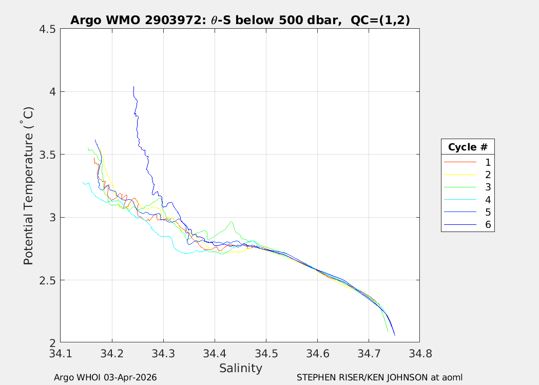 | WMO: #2903973 DAC: aoml PI: STEPHEN RISER/KEN JOHNSON APEX: #10744 SBE41CP: #20388 DRUCK_2900PSIA: #12459383 AANDERAA_OPTODE_4330: #4421 ISUS: #1174 DURA: #1174 ECO_FLBB_AP2: #9047 OCR504_ICSW: #2519 Altimeter Comparison (IFREMER) EuroArgo Link | n/a | n/a | ![]() |