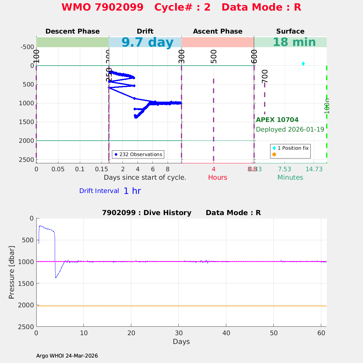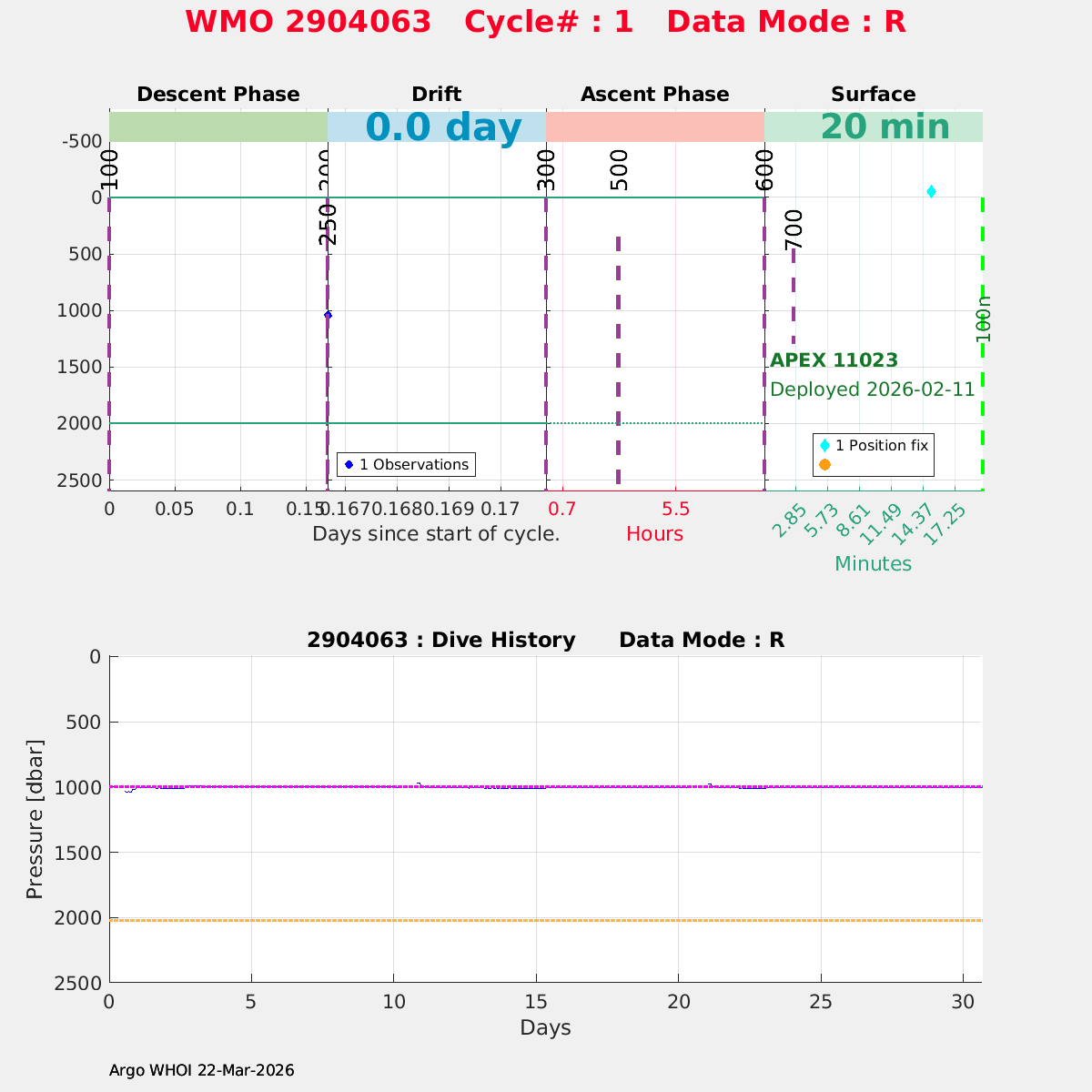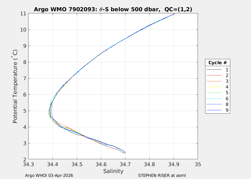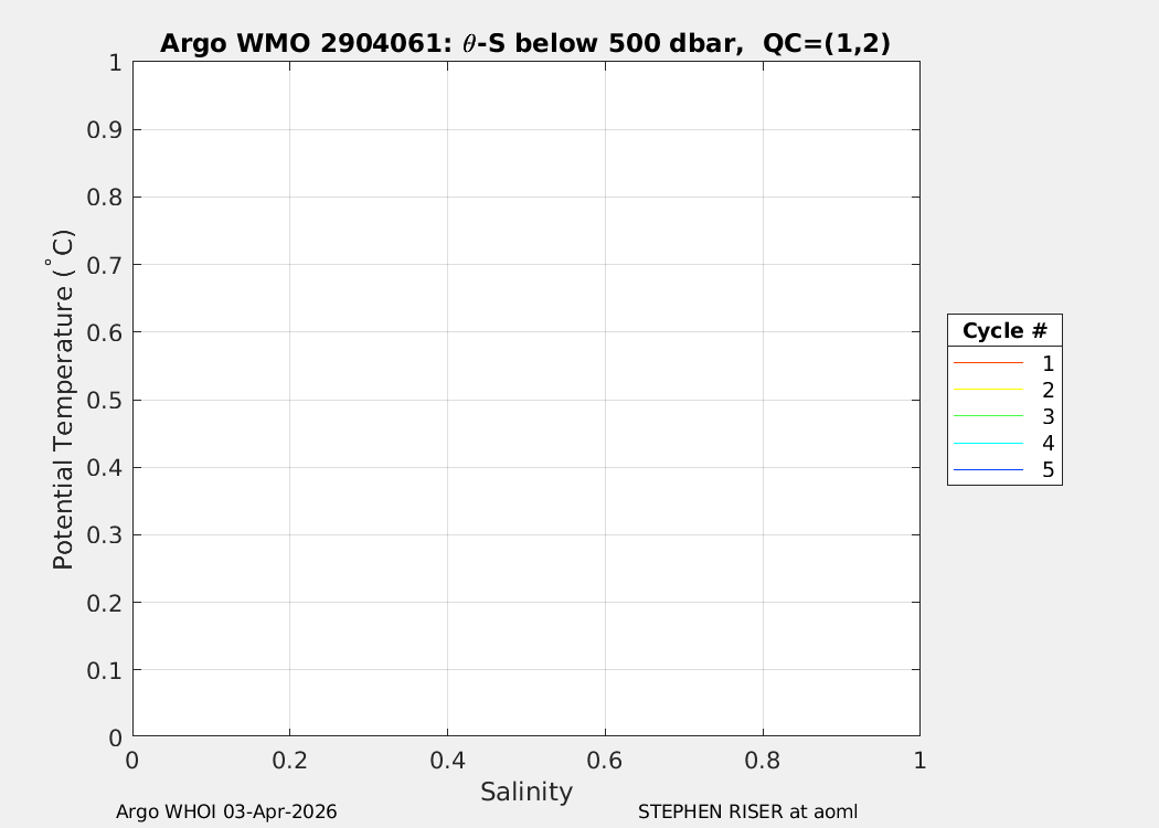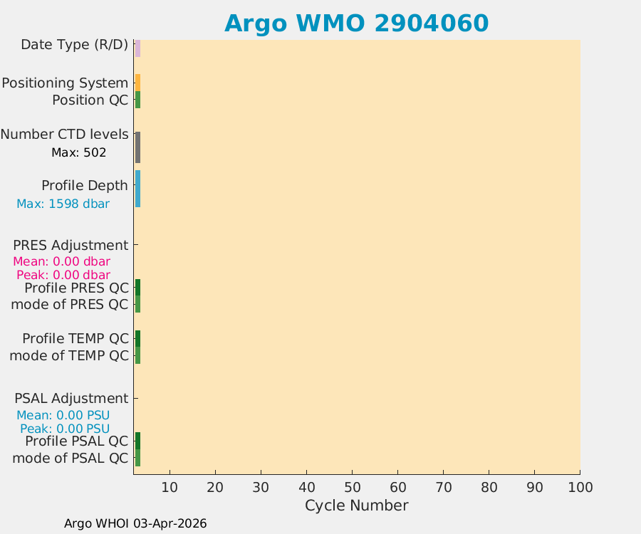 | WMO: #2904063 DAC: aoml PI: STEPHEN RISER APEX: #11023 SBE41CP: #20824 DRUCK_2900PSIA: #12459362 Altimeter Comparison (IFREMER) EuroArgo Link | n/a | n/a | ![]() |