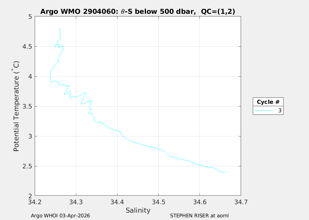 | WMO: #1902825 DAC: aoml PI: STEPHEN RISER APEX: #10689 SBE41CP: #20094 DRUCK_2900PSIA: #12462790 Altimeter Comparison (IFREMER) EuroArgo Link | n/a | n/a | ![]() |
