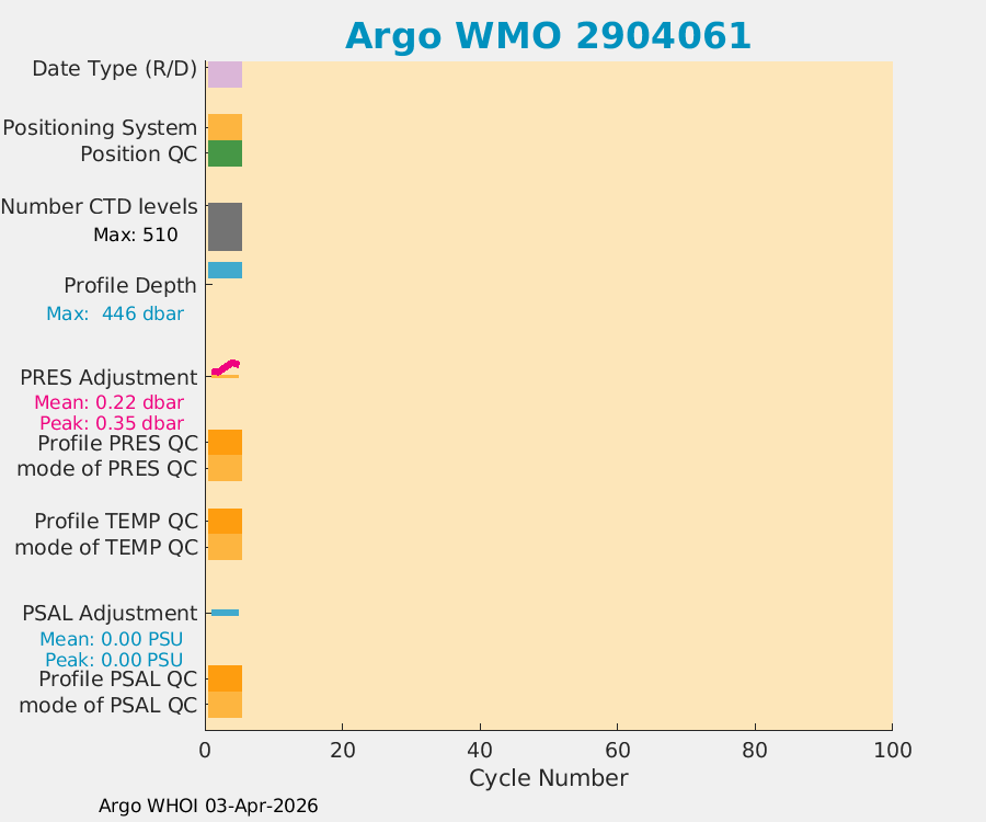 | WMO: #2904061 DAC: aoml PI: STEPHEN RISER APEX: #10820 SBE41CP: #20514 DRUCK_2900PSIA: #12657536 Altimeter Comparison (IFREMER) EuroArgo Link | n/a | n/a | ![]() |
