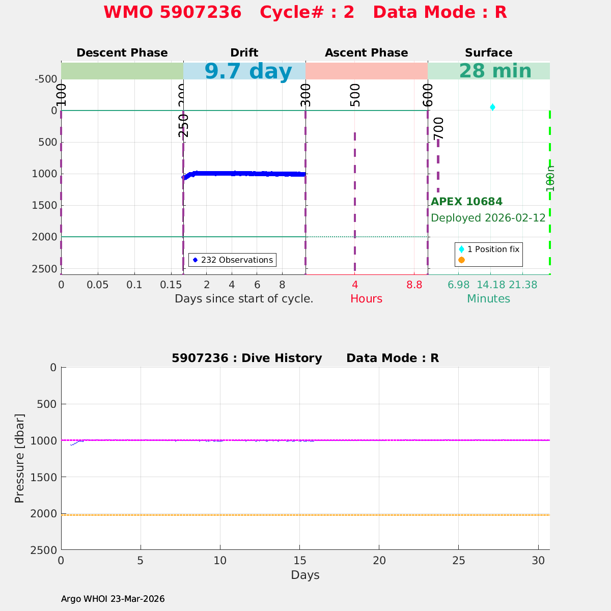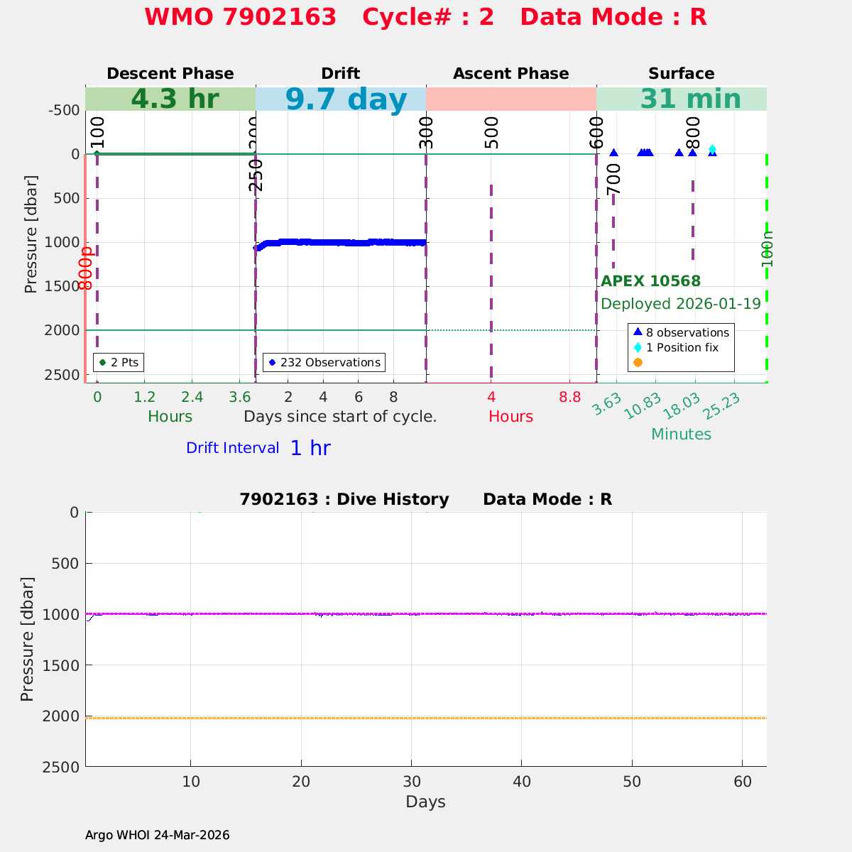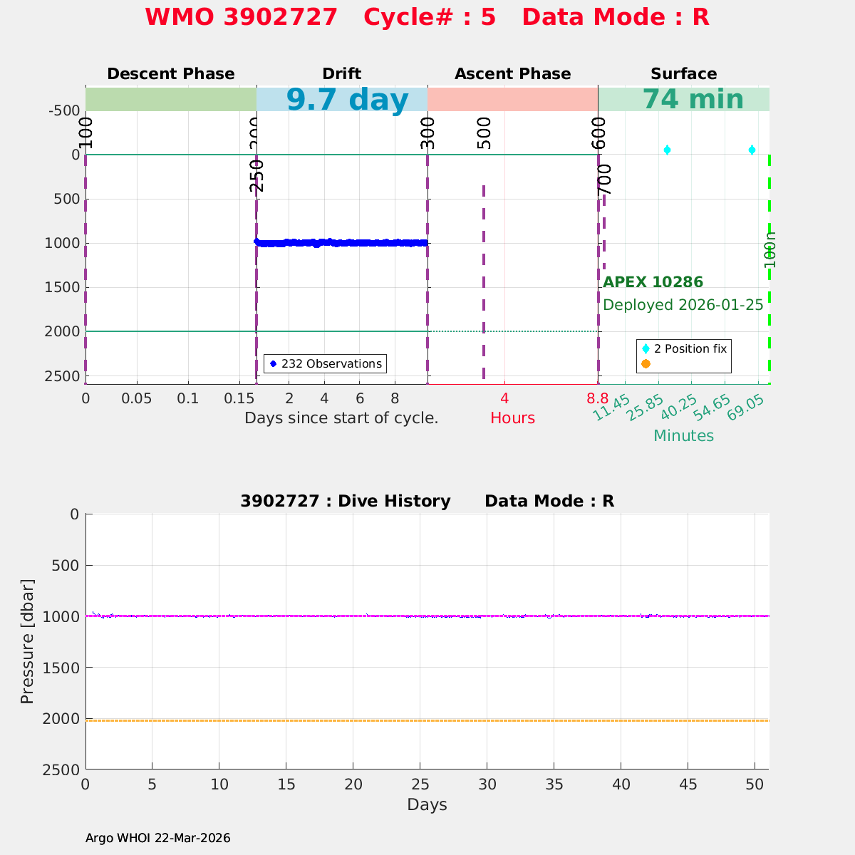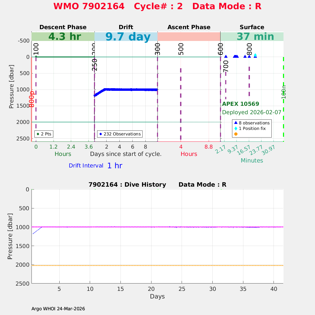 | WMO: #7902163 DAC: aoml PI: STEPHEN RISER/KEN JOHNSON APEX: #10568 SBE41CP: #20328 DRUCK_2900PSIA: #12591342 AANDERAA_OPTODE_4330: #4402 ISUS: #1169 DURA: #1169 ECO_FLBB_AP2: #9049 Altimeter Comparison (IFREMER) EuroArgo Link | n/a | n/a | ![]() |