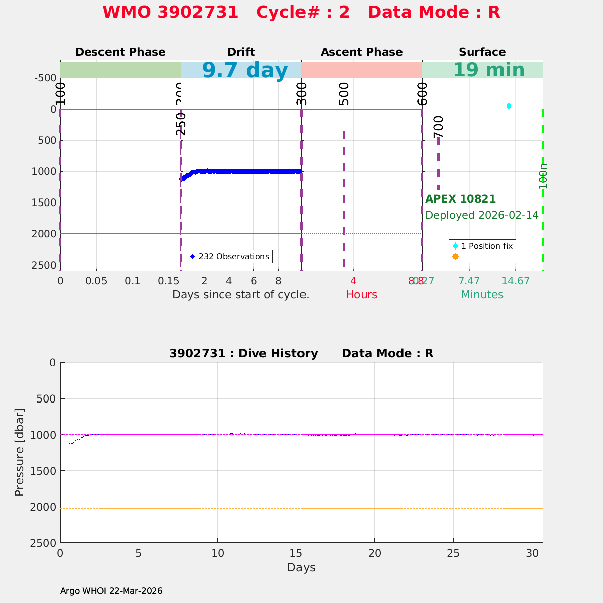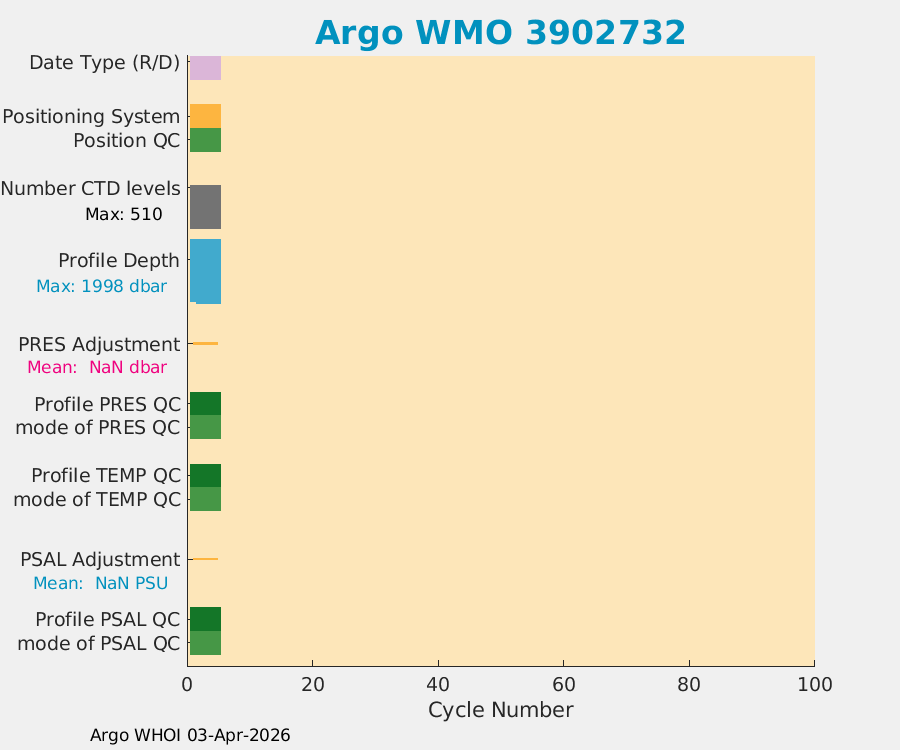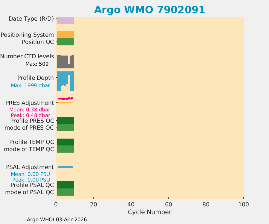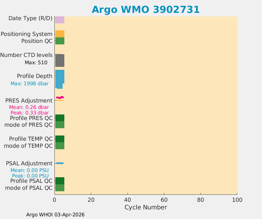 | WMO: #3902731 DAC: aoml PI: STEPHEN RISER APEX: #10821 SBE41CP: #20535 DRUCK_2900PSIA: #12512849 Altimeter Comparison (IFREMER) EuroArgo Link | n/a | n/a | ![]() |