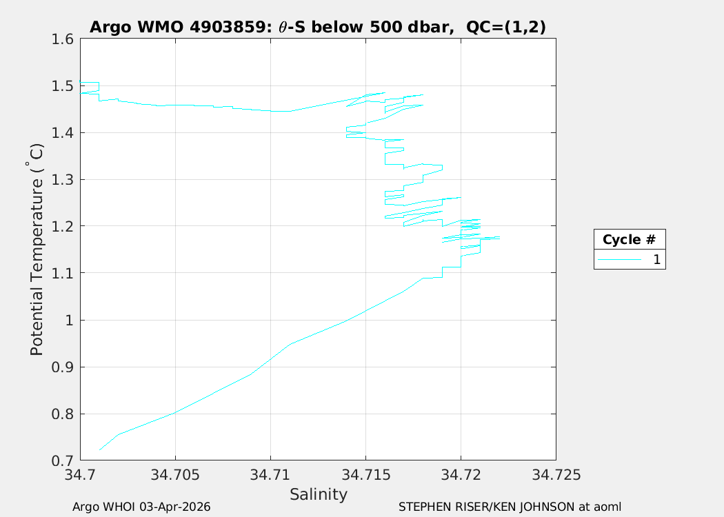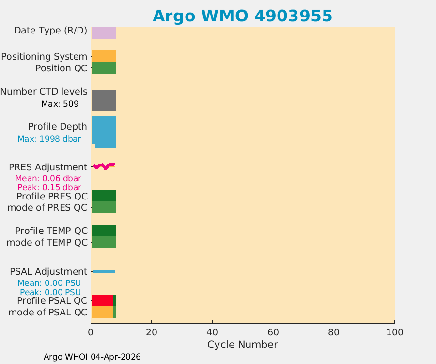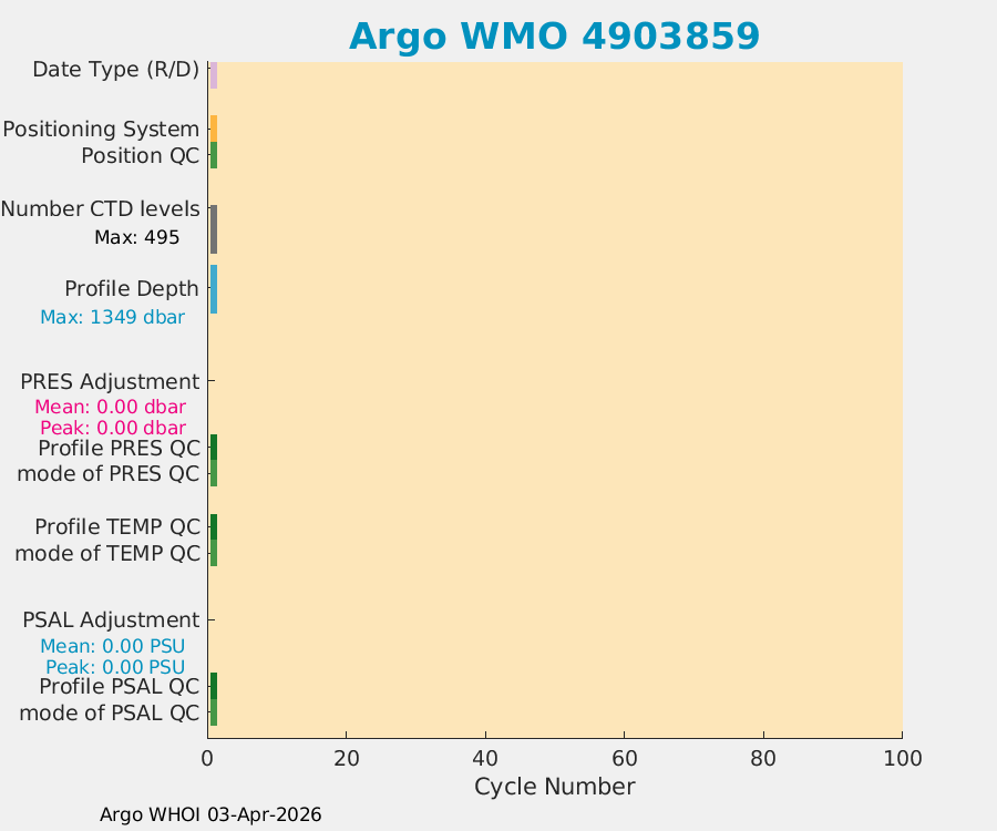 | WMO: #4903949 DAC: aoml PI: STEPHEN RISER APEX: #10549 SBE41CP: #18725 DRUCK_2900PSIA: #12263192 Altimeter Comparison (IFREMER) EuroArgo Link | n/a | n/a | ![]() |