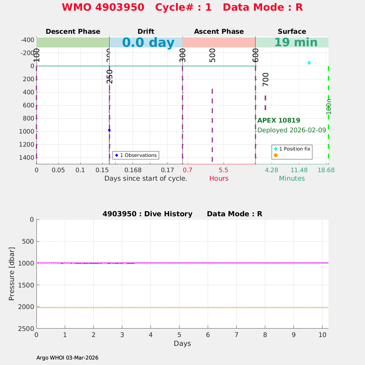 | WMO: #4903950 DAC: aoml PI: STEPHEN RISER APEX: #10819 SBE41CP: #20517 DRUCK_2900PSIA: #12648762 Altimeter Comparison (IFREMER) EuroArgo Link | n/a | n/a | ![]() |