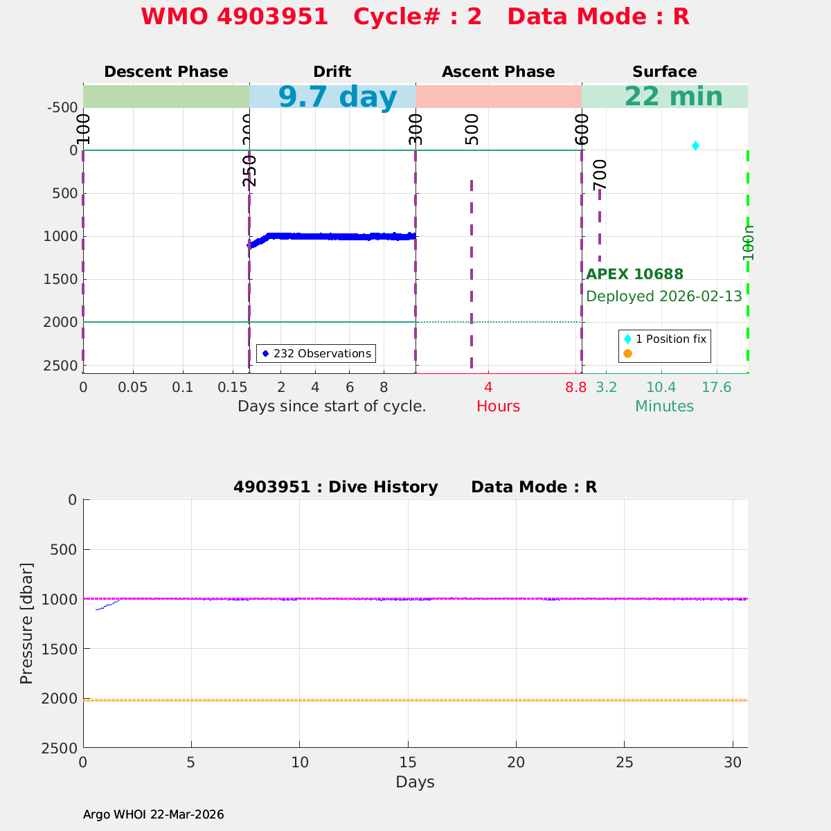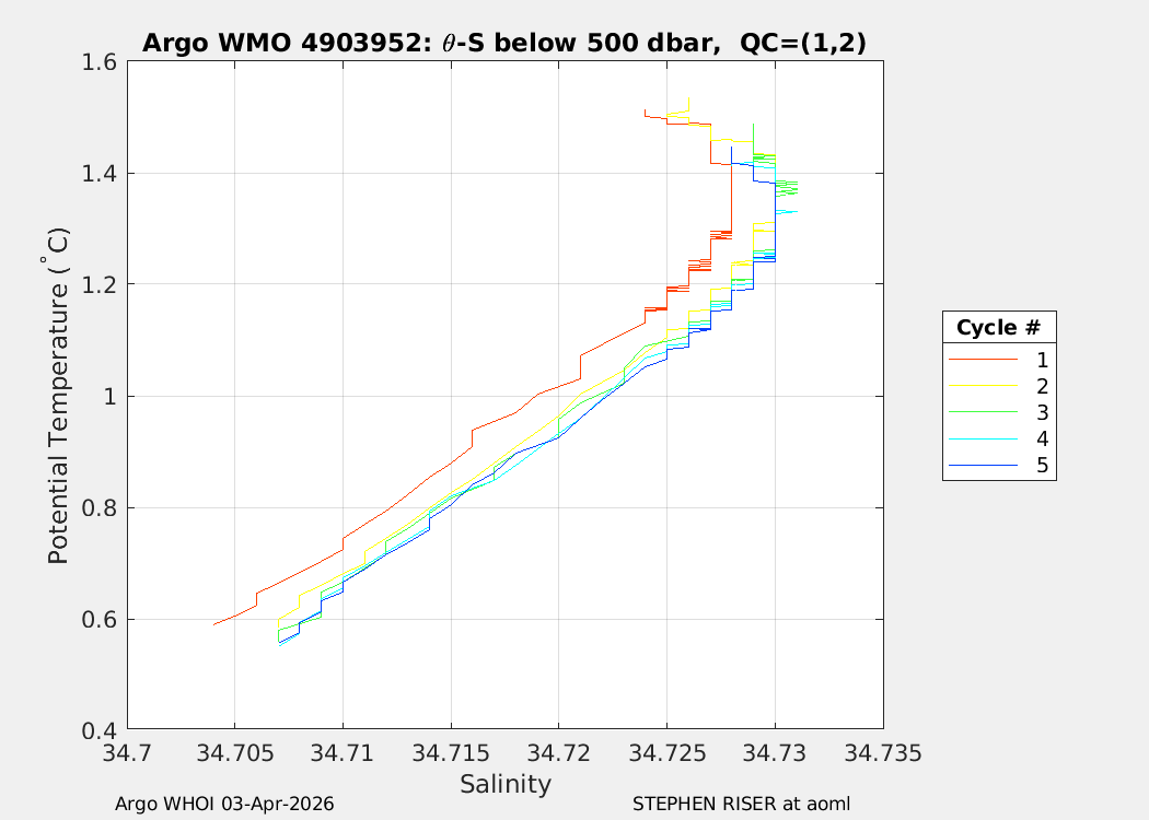 | WMO: #4903951 DAC: aoml PI: STEPHEN RISER APEX: #10688 SBE41CP: #20148 DRUCK_2900PSIA: #12531899 Altimeter Comparison (IFREMER) EuroArgo Link | n/a | n/a | ![]() |