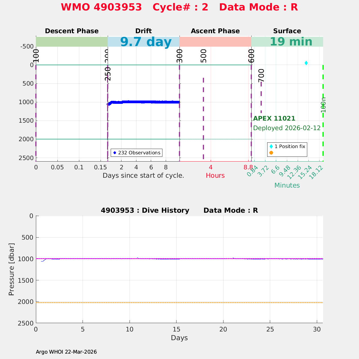 | WMO: #4903953 DAC: aoml PI: STEPHEN RISER APEX: #11021 SBE41CP: #20823 DRUCK_2900PSIA: #12459361 Altimeter Comparison (IFREMER) EuroArgo Link | n/a | n/a | ![]() |