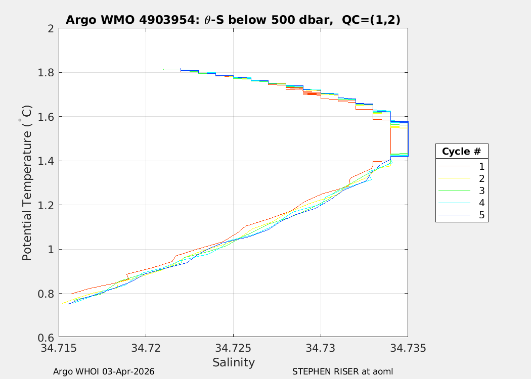 | WMO: #4903954 DAC: aoml PI: STEPHEN RISER APEX: #10686 SBE41CP: #20234 DRUCK_2900PSIA: #12439104 Altimeter Comparison (IFREMER) EuroArgo Link | n/a | n/a | ![]() |