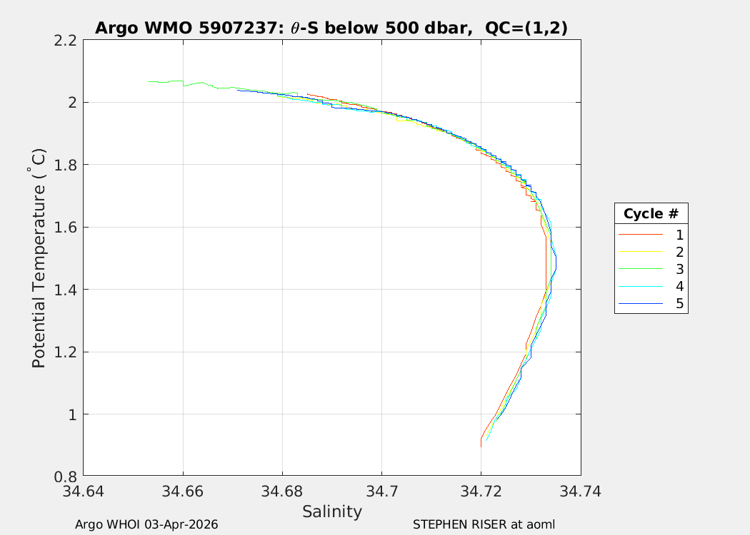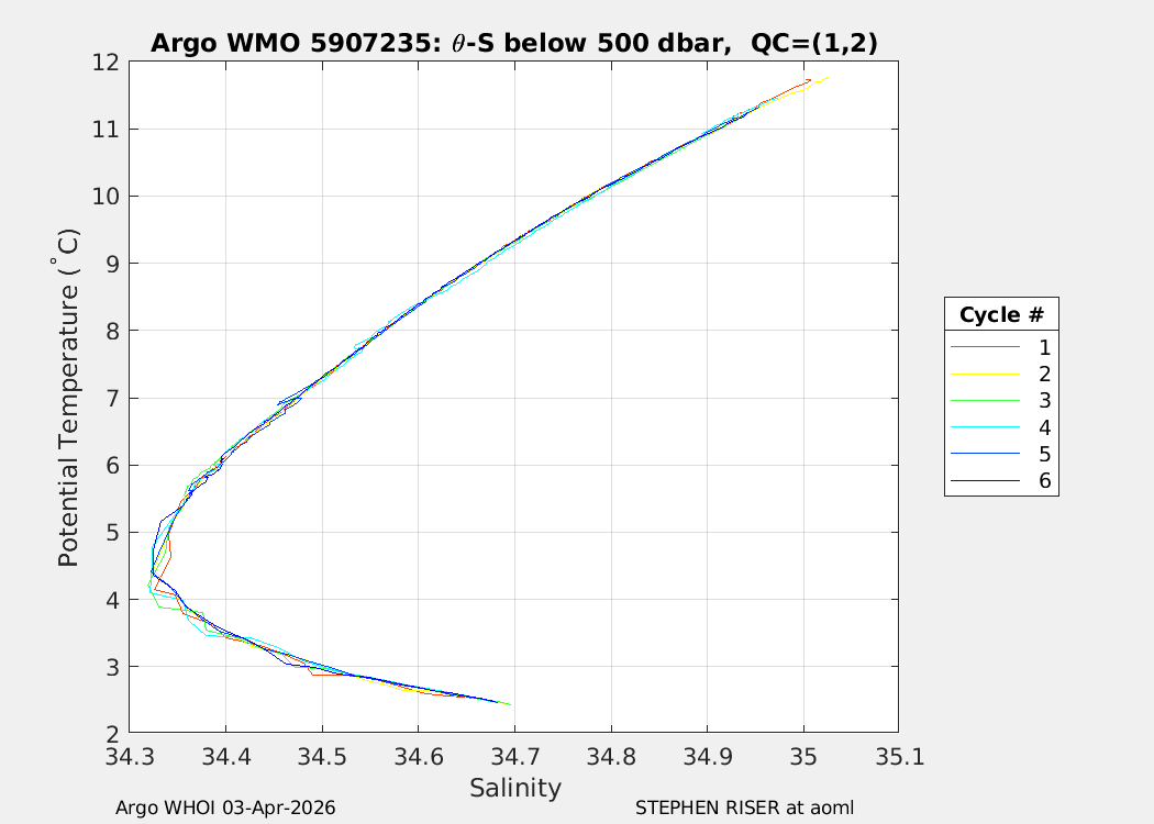 | WMO: #5907235 DAC: aoml PI: STEPHEN RISER APEX: #10555 SBE41CP: #18770 DRUCK_2900PSIA: #12339784 Altimeter Comparison (IFREMER) EuroArgo Link | n/a | n/a | ![]() |
