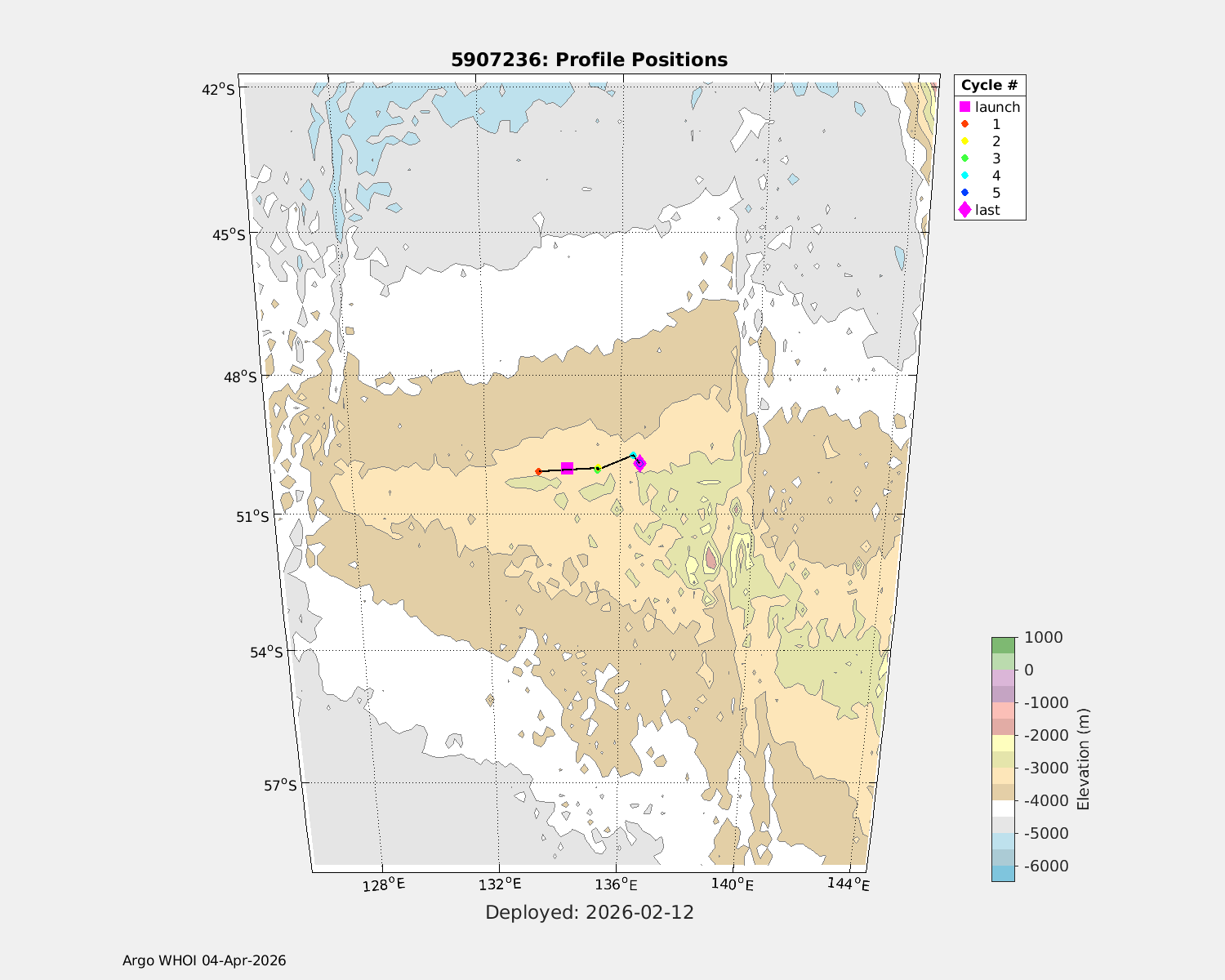 | WMO: #5907237 DAC: aoml PI: STEPHEN RISER APEX: #11019 SBE41CP: #20802 DRUCK_2900PSIA: #12439083 AANDERAA_OPTODE_4330: #3607 Altimeter Comparison (IFREMER) EuroArgo Link | n/a | n/a | ![]() |