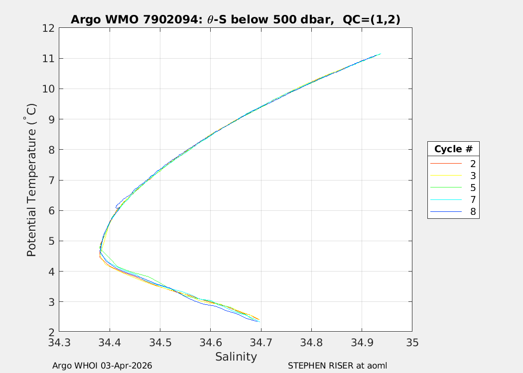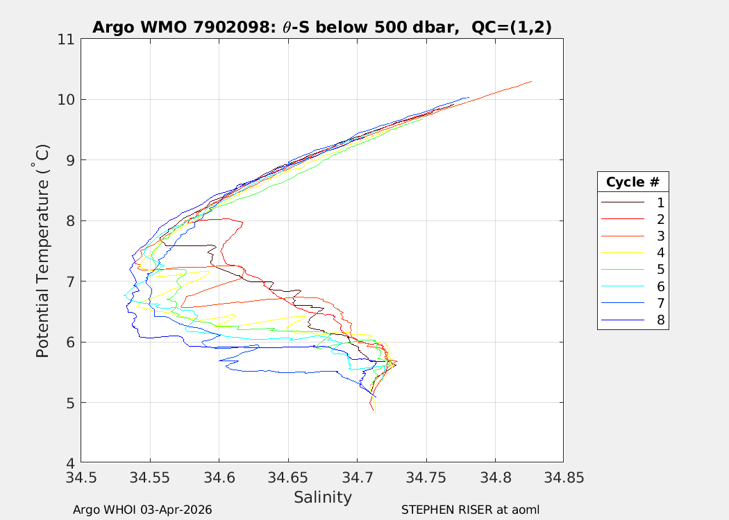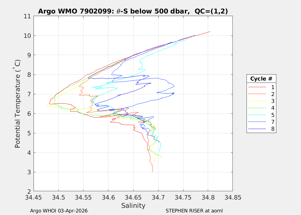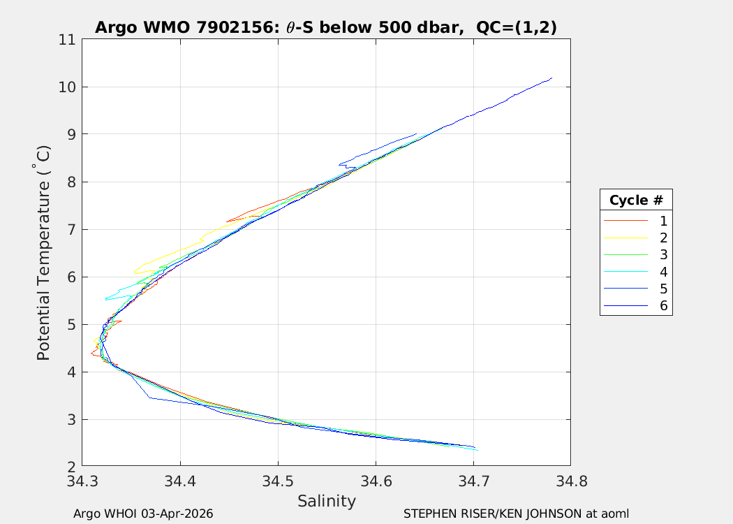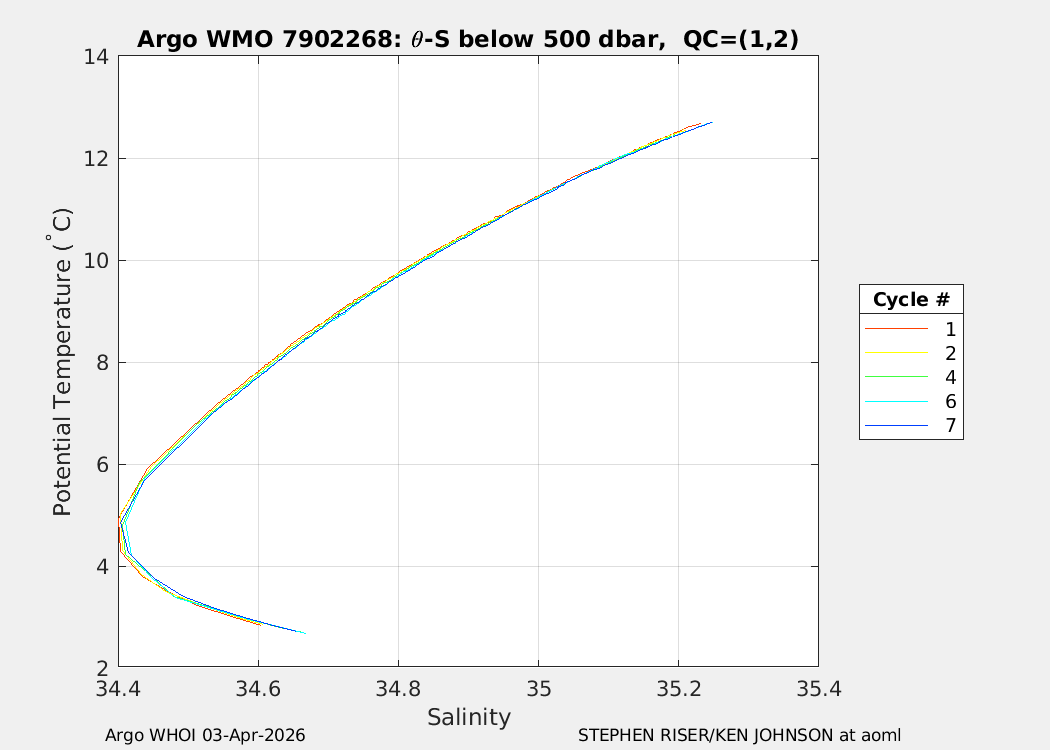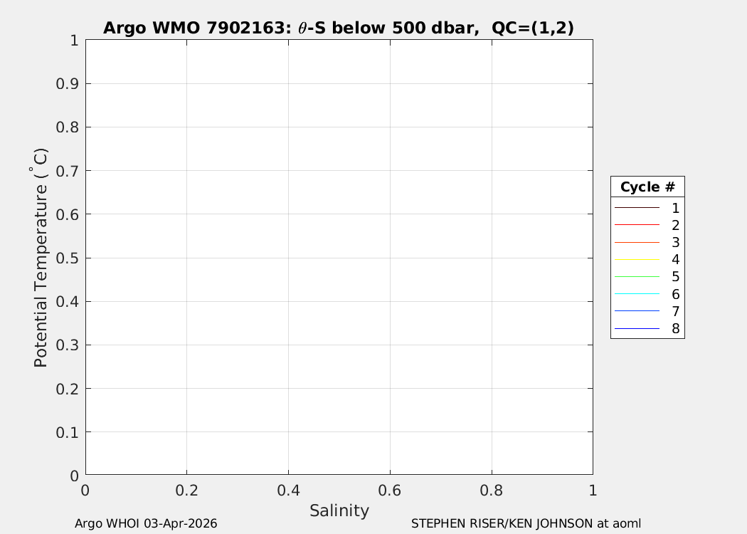 | WMO: #7902156 DAC: aoml PI: STEPHEN RISER/KEN JOHNSON APEX: #10572 SBE41CP: #20366 DRUCK_2900PSIA: #12648764 AANDERAA_OPTODE_4330: #4406 ISUS: #1165 DURA: #1165 ECO_FLBB_AP2: #8267 OCR504_ICSW: #2530 Altimeter Comparison (IFREMER) EuroArgo Link | n/a | n/a | ![]() |