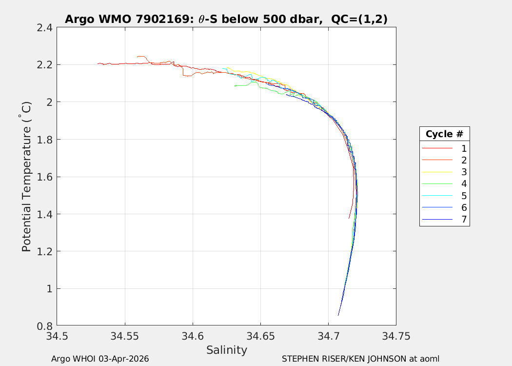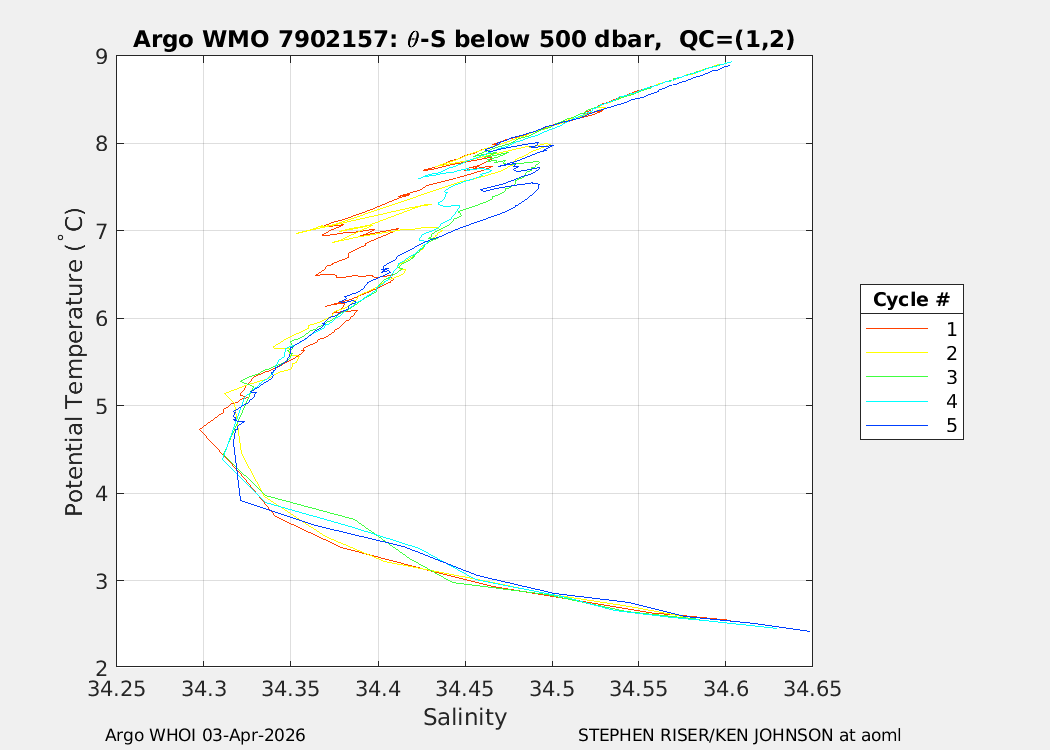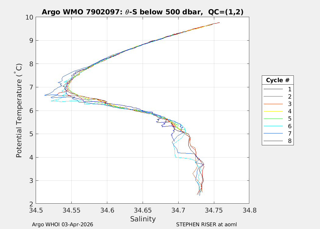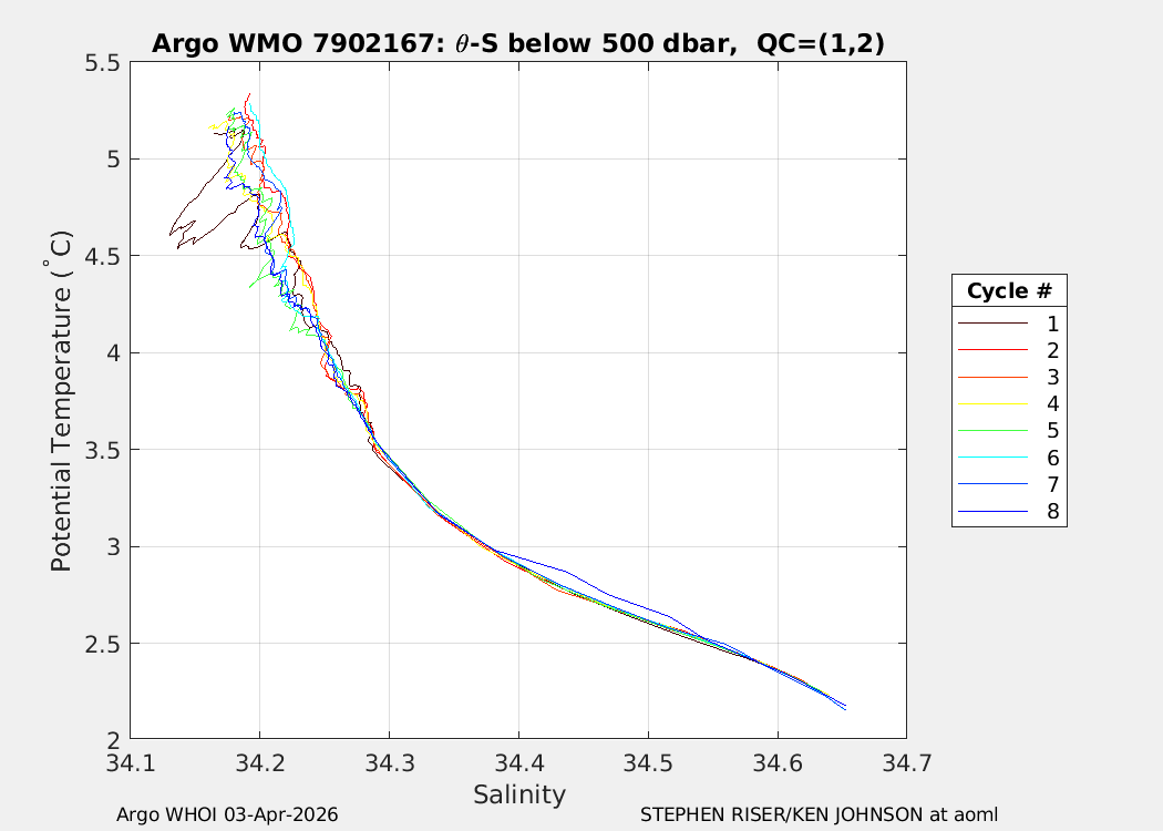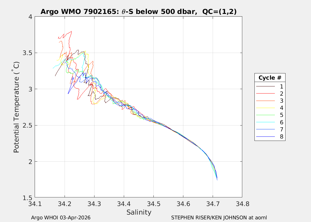 | WMO: #7902156 DAC: aoml PI: STEPHEN RISER/KEN JOHNSON APEX: #10572 SBE41CP: #20366 DRUCK_2900PSIA: #12648764 AANDERAA_OPTODE_4330: #4406 ISUS: #1165 DURA: #1165 ECO_FLBB_AP2: #8267 OCR504_ICSW: #2530 Altimeter Comparison (IFREMER) EuroArgo Link | n/a | n/a | ![]() |