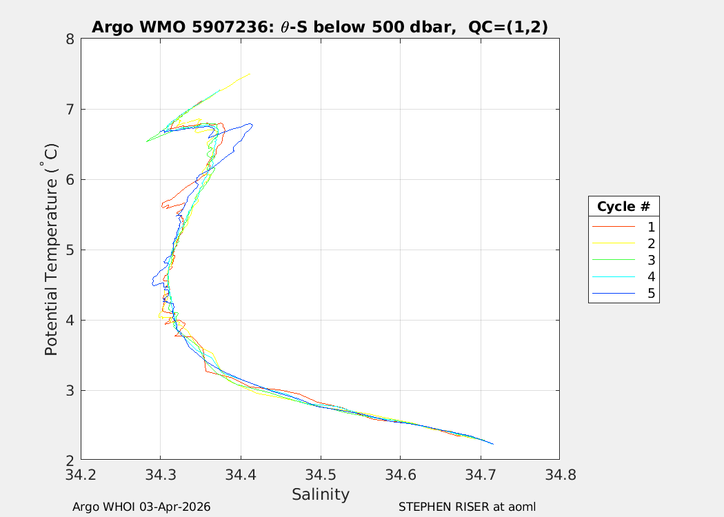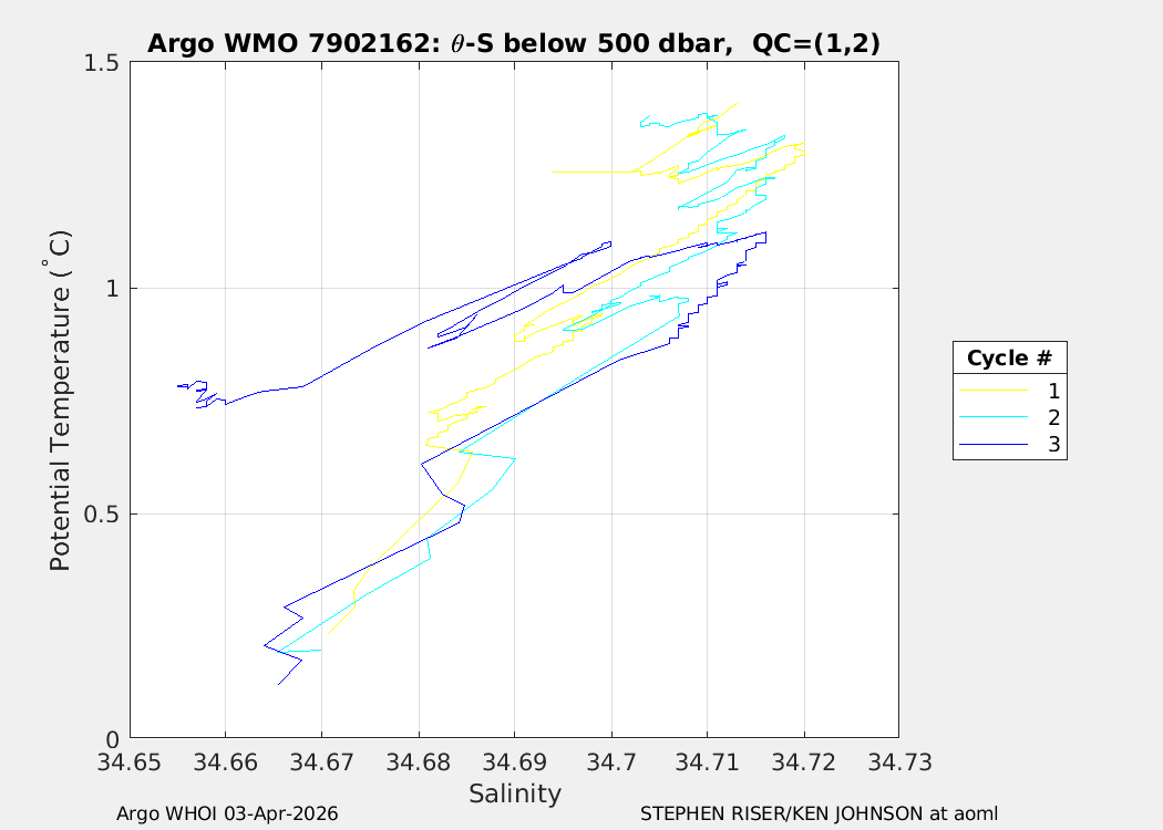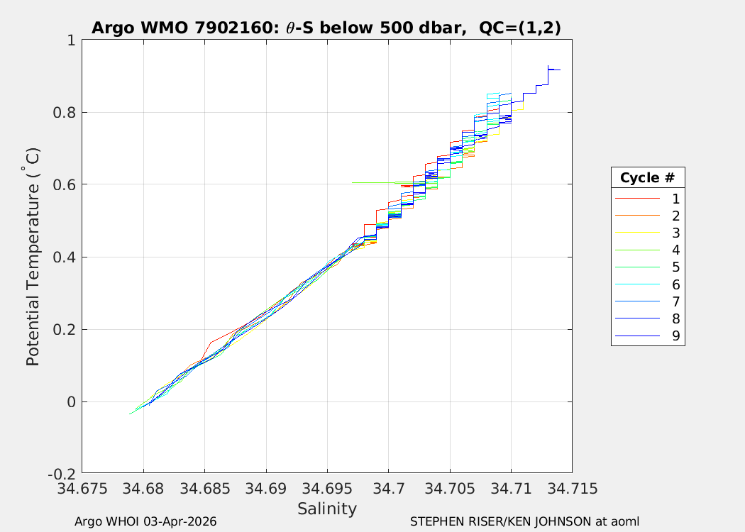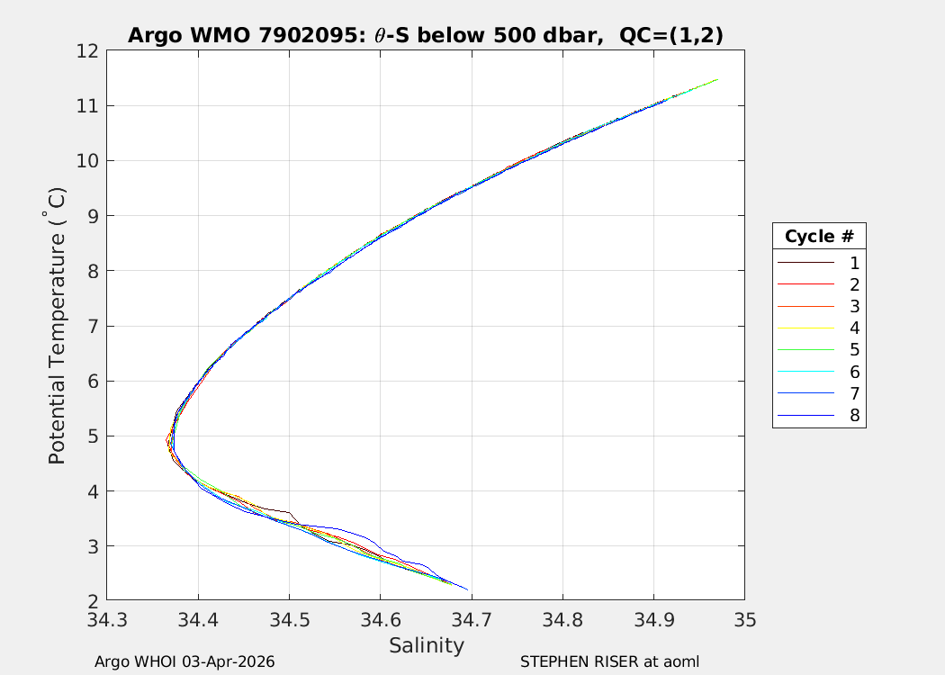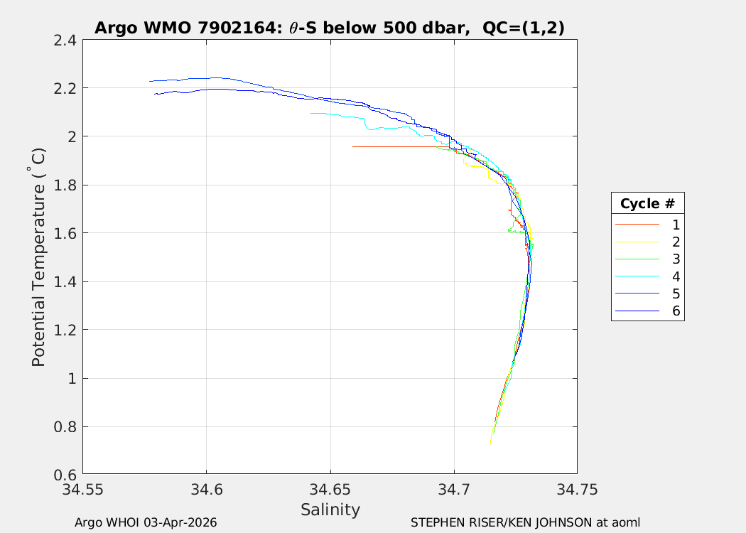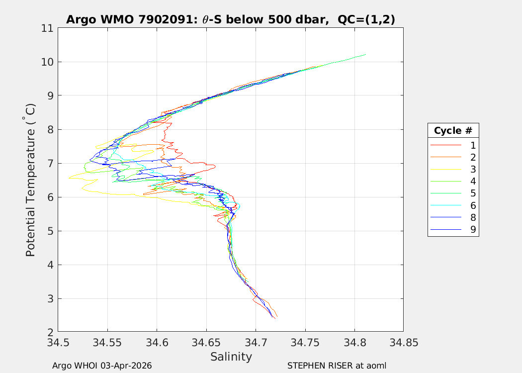 | WMO: #7902156 DAC: aoml PI: STEPHEN RISER/KEN JOHNSON APEX: #10572 SBE41CP: #20366 DRUCK_2900PSIA: #12648764 AANDERAA_OPTODE_4330: #4406 ISUS: #1165 DURA: #1165 ECO_FLBB_AP2: #8267 OCR504_ICSW: #2530 Altimeter Comparison (IFREMER) EuroArgo Link | n/a | n/a | ![]() |