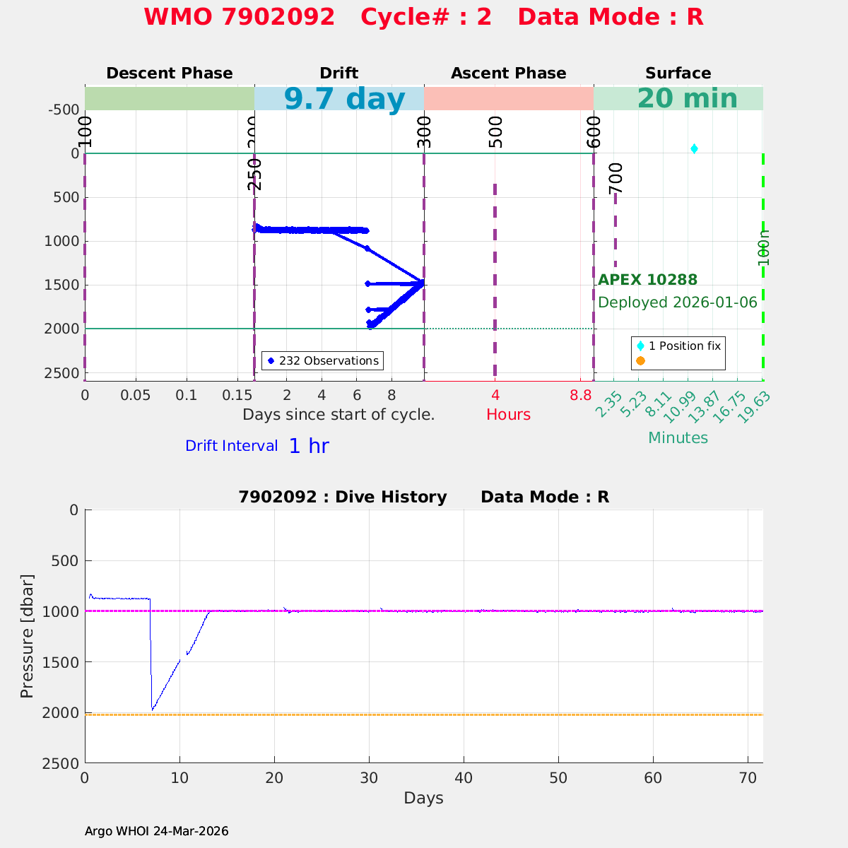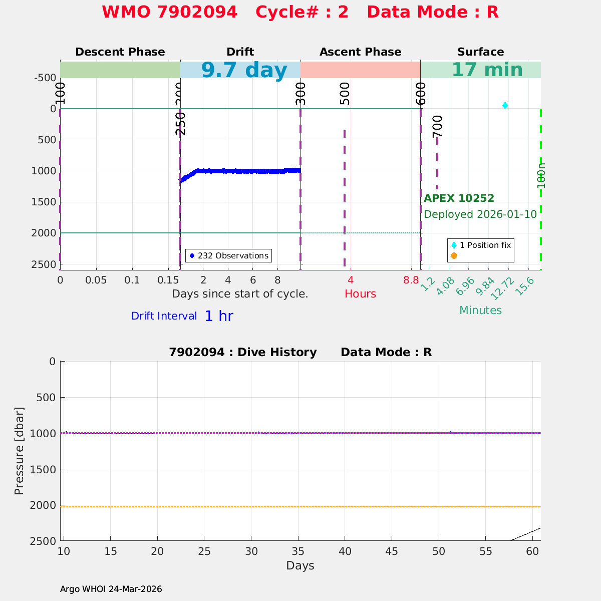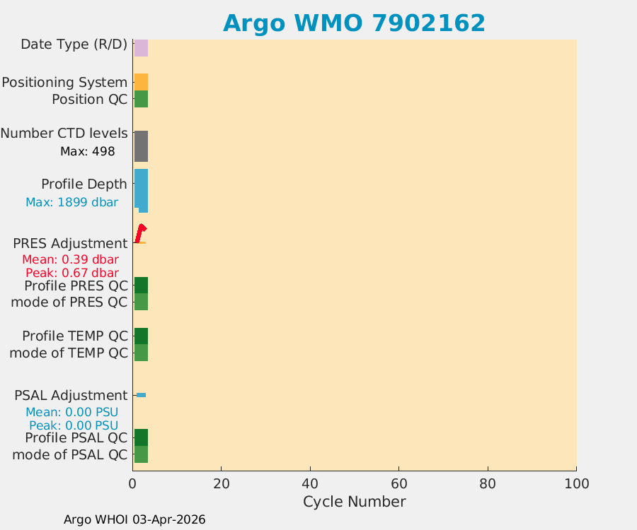 | WMO: #7902094 DAC: aoml PI: STEPHEN RISER APEX: #10252 SBE41CP: #18965 DRUCK_2900PSIA: #12271089 Altimeter Comparison (IFREMER) EuroArgo Link | n/a | n/a | ![]() |