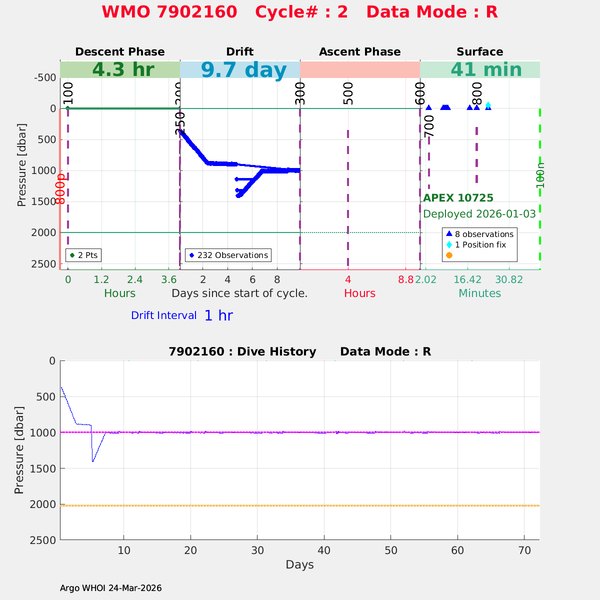 | WMO: #7902160 DAC: aoml PI: STEPHEN RISER/KEN JOHNSON APEX: #10725 SBE41CP: #20218 DRUCK_2900PSIA: #12441652 AANDERAA_OPTODE_4330: #4417 ISUS: #1135 DURA: #1135 ECO_FLBB_AP2: #8270 Altimeter Comparison (IFREMER) EuroArgo Link | n/a | n/a | ![]() |