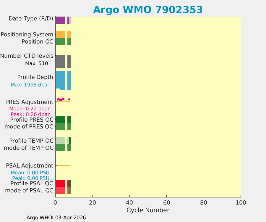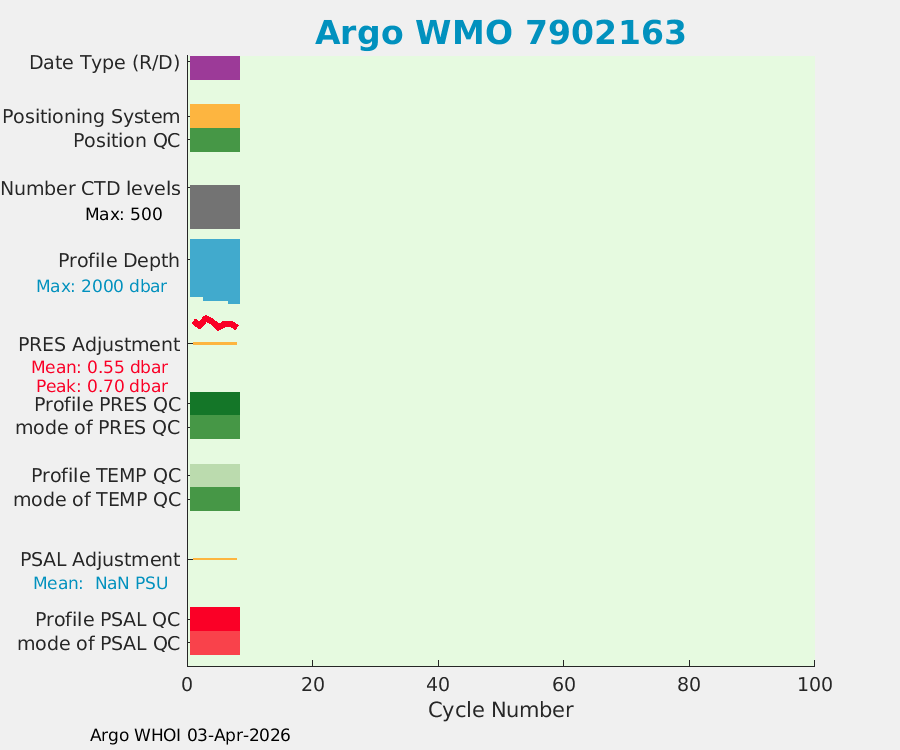 | WMO: #7902355 DAC: aoml PI: STEPHEN RISER APEX: #10321 SBE41CP: #18727 DRUCK_2900PSIA: #12137812 Altimeter Comparison (IFREMER) EuroArgo Link | n/a | n/a | ![]() |