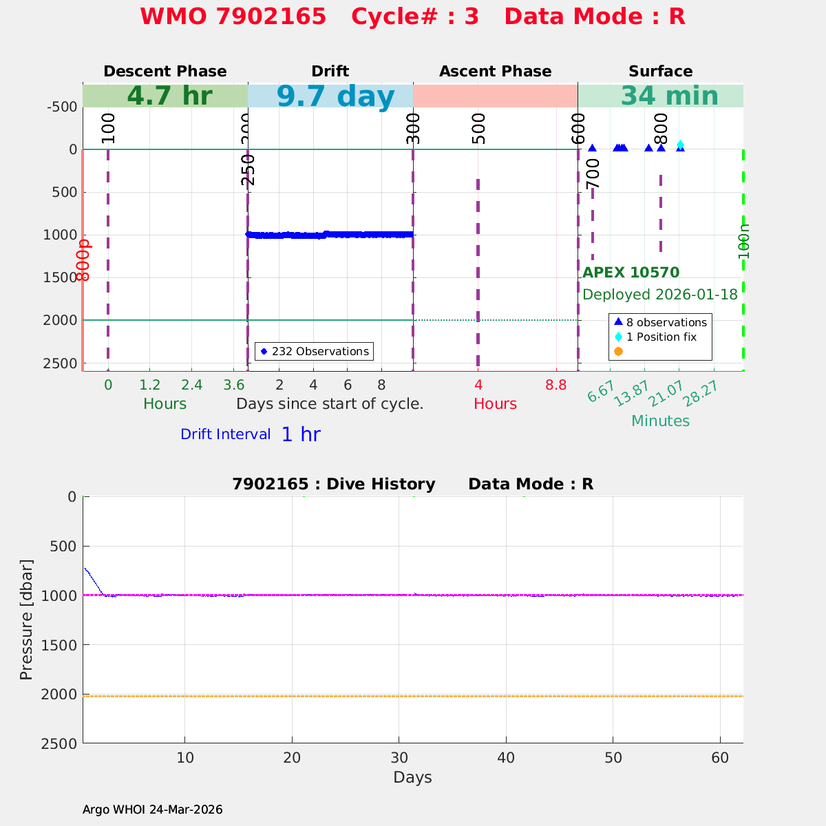 | WMO: #7902165 DAC: aoml PI: STEPHEN RISER/KEN JOHNSON APEX: #10570 SBE41CP: #20335 DRUCK_2900PSIA: #12263244 AANDERAA_OPTODE_4330: #4404 ISUS: #1164 DURA: #1164 ECO_FLBB_AP2: #8262 Altimeter Comparison (IFREMER) EuroArgo Link | n/a | n/a | ![]() |