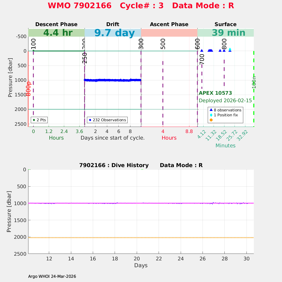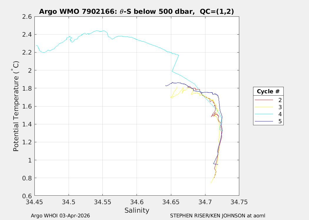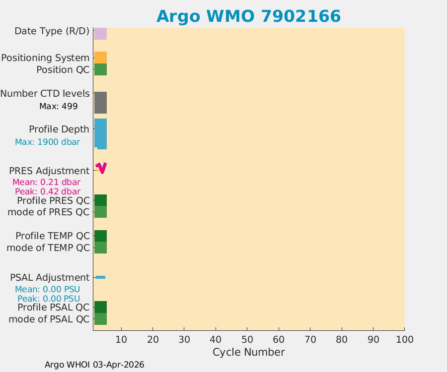 | WMO: #7902166 DAC: aoml PI: STEPHEN RISER/KEN JOHNSON APEX: #10573 SBE41CP: #20376 DRUCK_2900PSIA: #12512852 AANDERAA_OPTODE_4330: #4407 ISUS: #1167 DURA: #1167 ECO_FLBB_AP2: #8266 OCR504_ICSW: #2531 Altimeter Comparison (IFREMER) EuroArgo Link | n/a | n/a | ![]() |