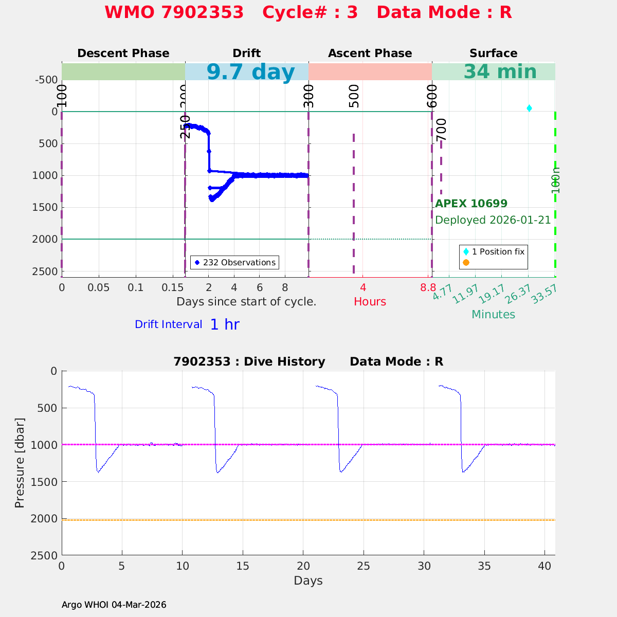 | WMO: #7902353 DAC: aoml PI: STEPHEN RISER APEX: #10699 SBE41CP: #20147 DRUCK_2900PSIA: #12531896 Altimeter Comparison (IFREMER) EuroArgo Link | n/a | n/a | ![]() |