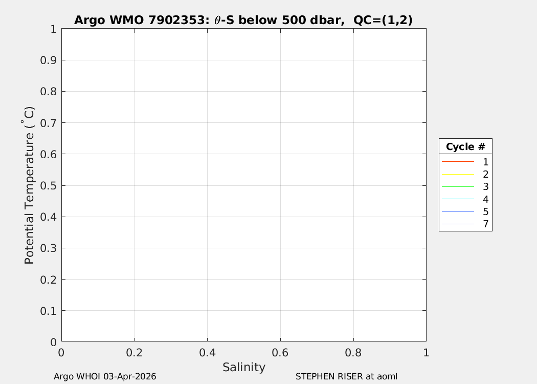 | WMO: #7902354 DAC: aoml PI: STEPHEN RISER APEX: #10550 SBE41CP: #18768 DRUCK_2900PSIA: #12339781 Altimeter Comparison (IFREMER) EuroArgo Link | n/a | n/a | ![]() |