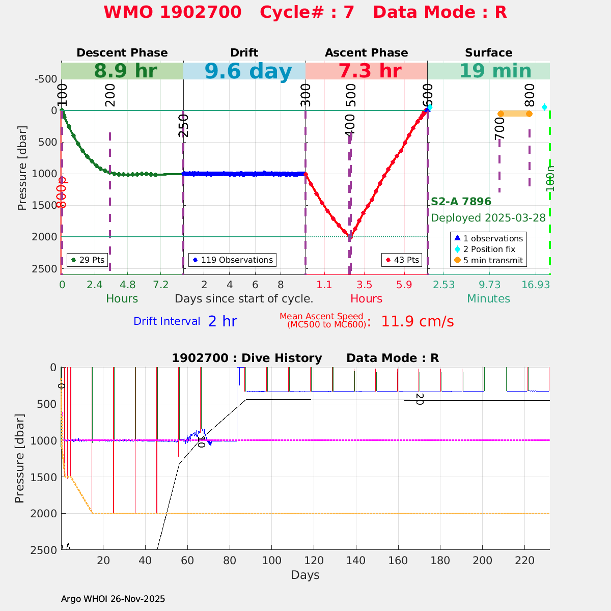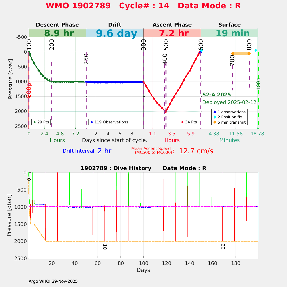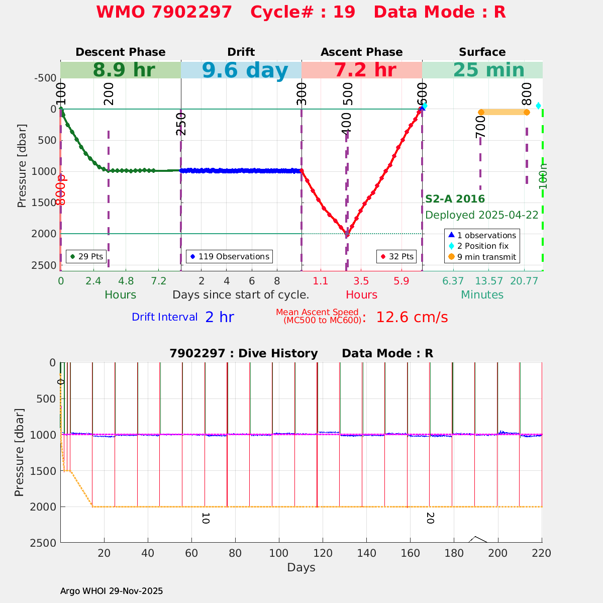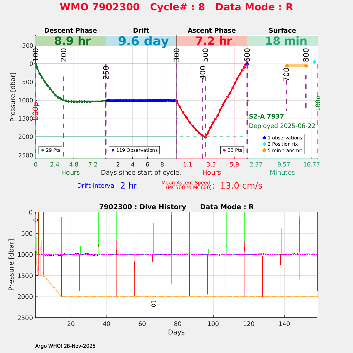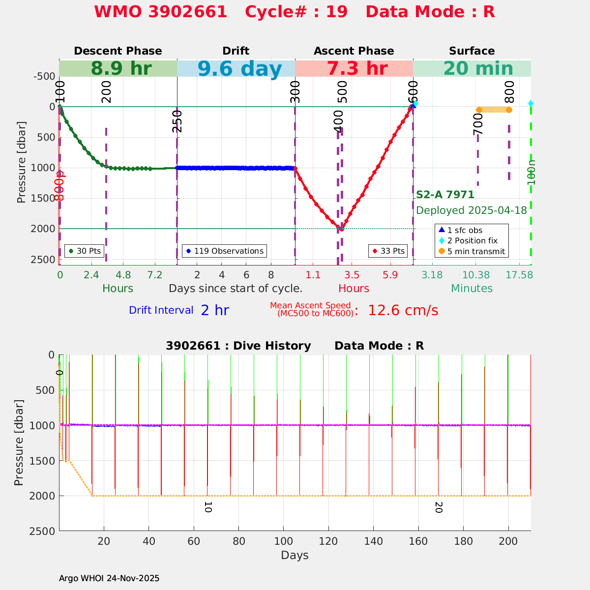 | WMO: #7902311 DAC: aoml PI: SUSAN WIJFFELS, DAVID NICHOLSON NAVIS_EBR: #1661 DRUCK_2900PSIA: #12603767 SBE41CP: #20178 SEAFET: #726-20126 MCOMS_FLBBCD: #506 SUNA_V2: #2300 SBE83_OPTODE: #0119 Altimeter Comparison (IFREMER) EuroArgo Link | n/a | n/a | ![]() |