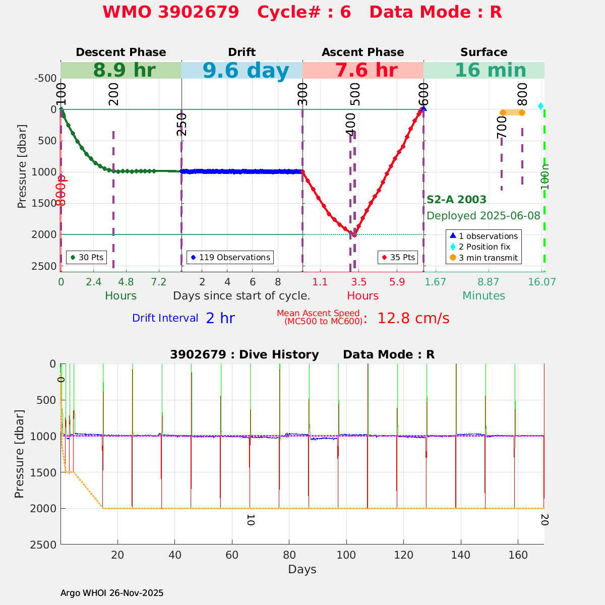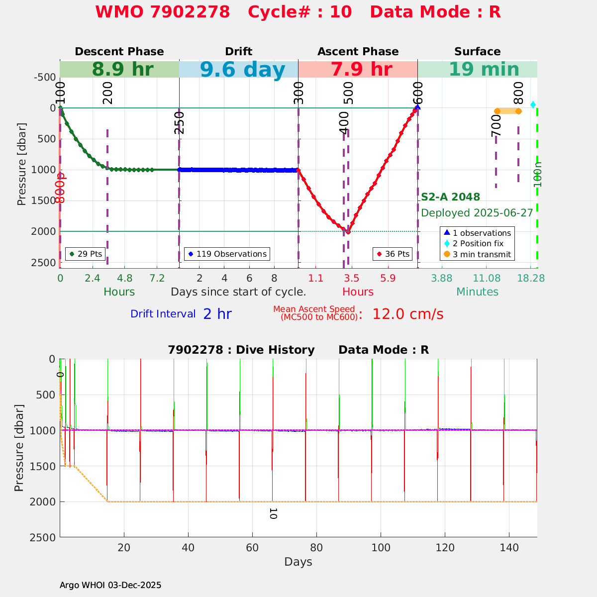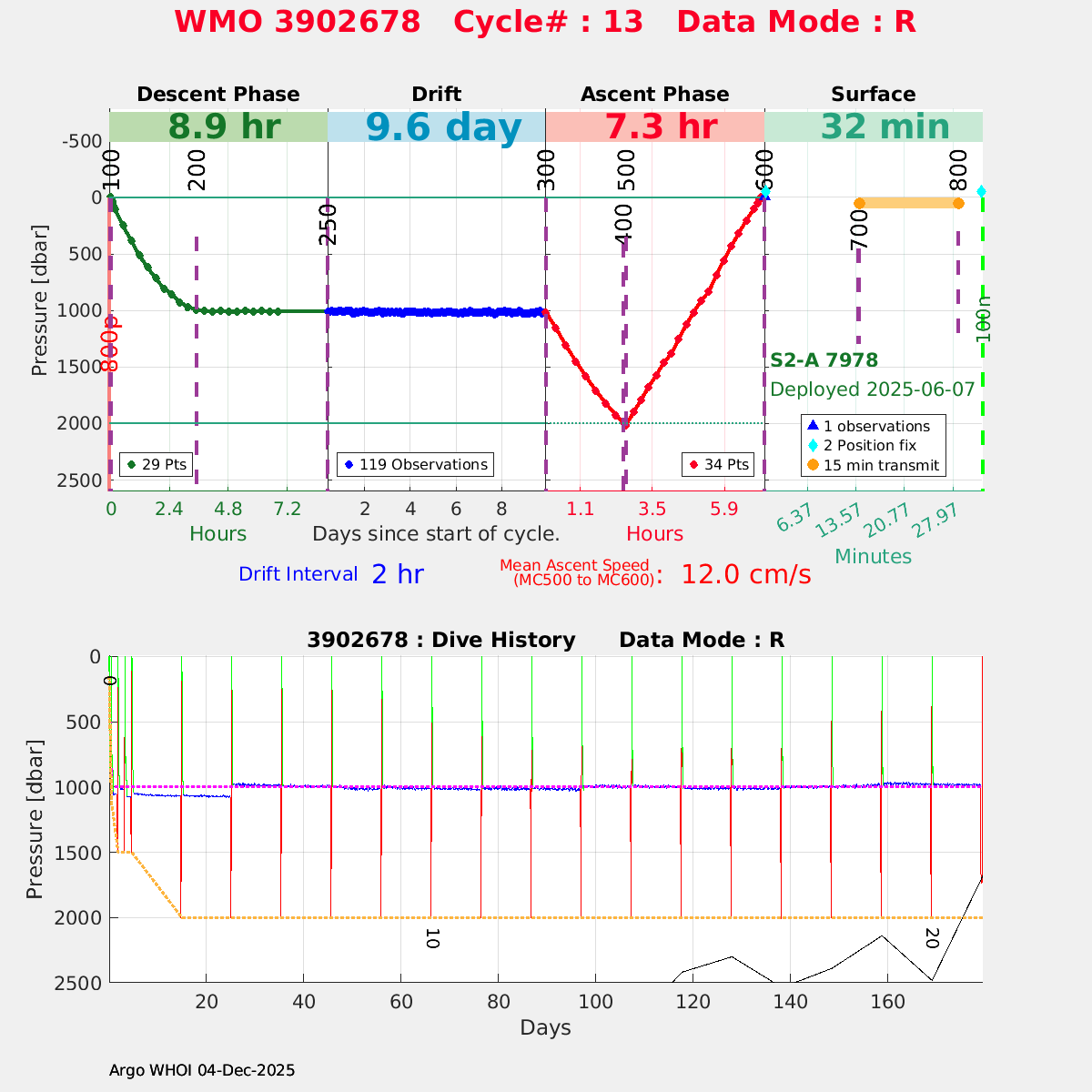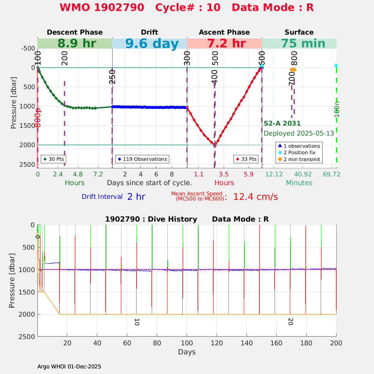 | WMO: #1902778 DAC: aoml PI: SUSAN WIJFFELS, STEVEN JAYNE, PELLE ROBBINS ALTO: #11682 RBR_ARGO3: #232487 RBR_PRES_A: #232487 Altimeter Comparison (IFREMER) EuroArgo Link | n/a | n/a | ![]() |