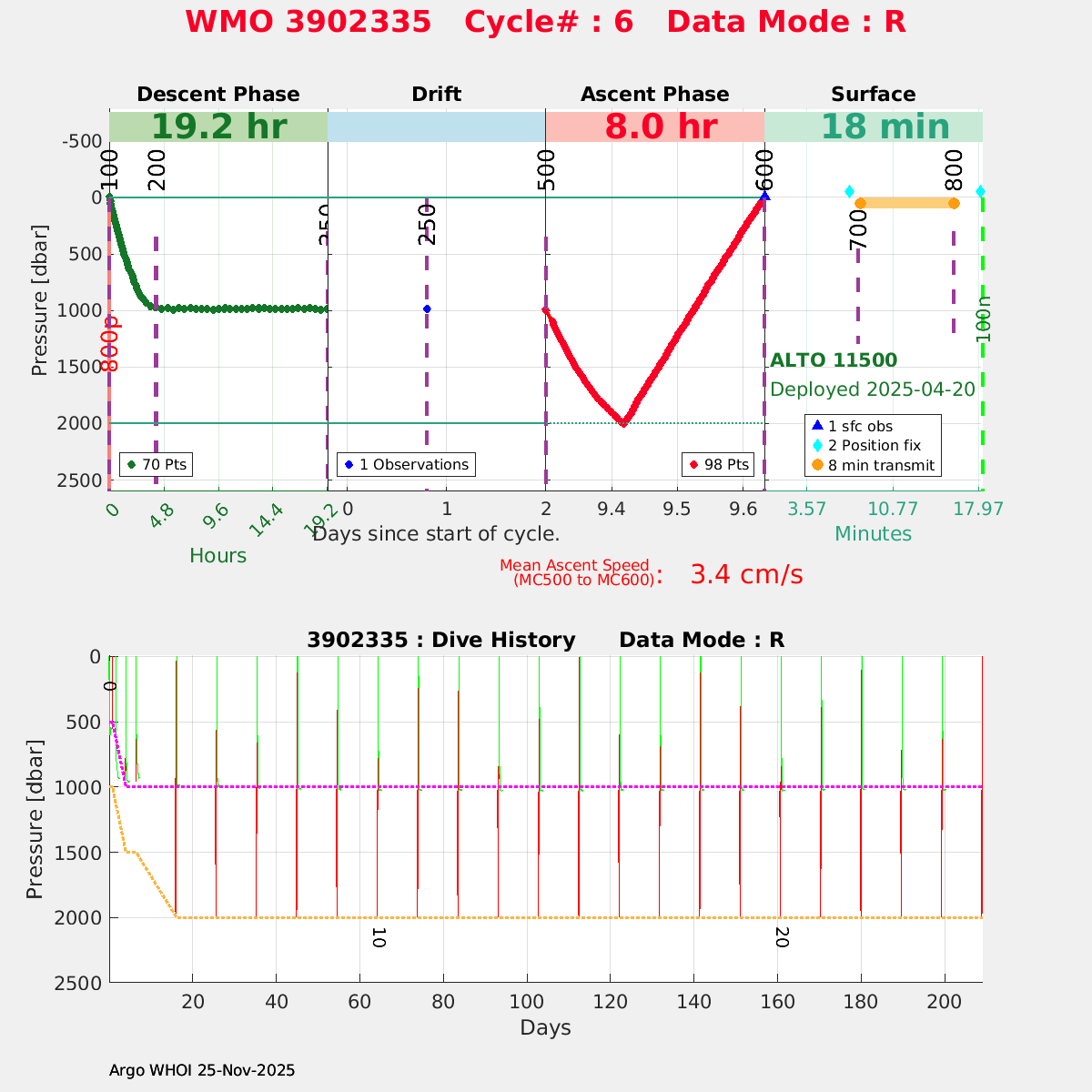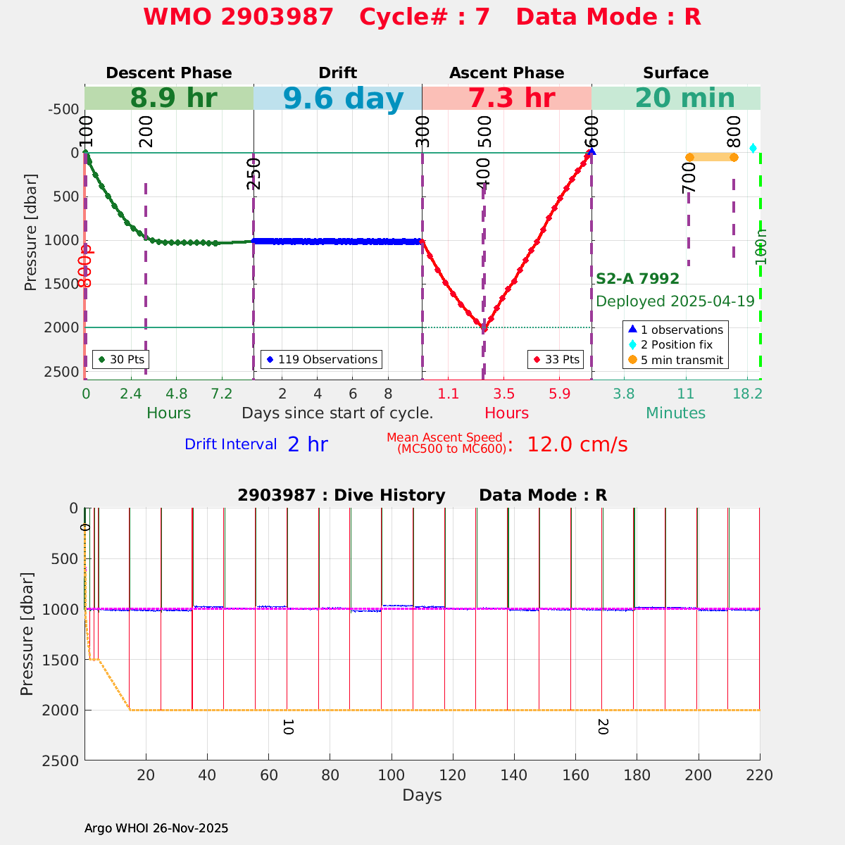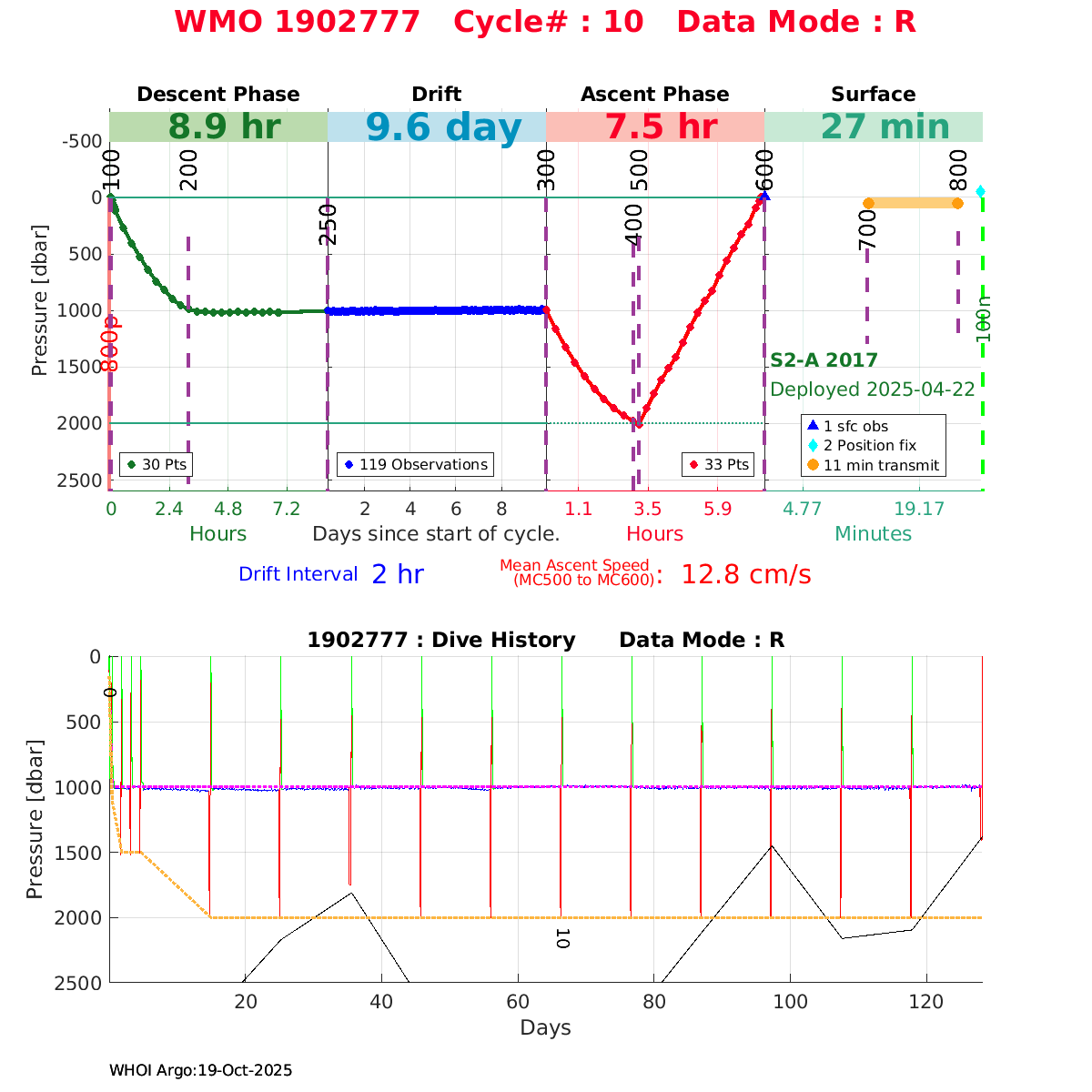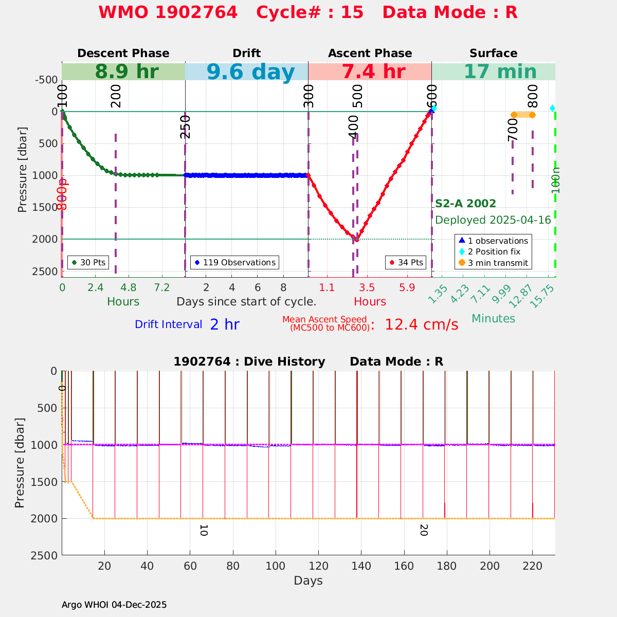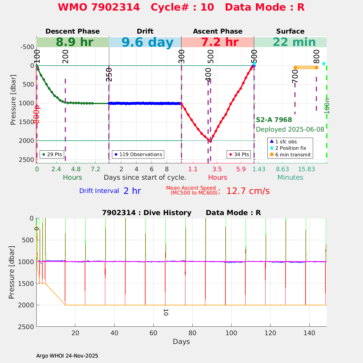 | WMO: #1902778 DAC: aoml PI: SUSAN WIJFFELS, STEVEN JAYNE, PELLE ROBBINS ALTO: #11682 RBR_ARGO3: #232487 RBR_PRES_A: #232487 Altimeter Comparison (IFREMER) EuroArgo Link | n/a | n/a | ![]() |