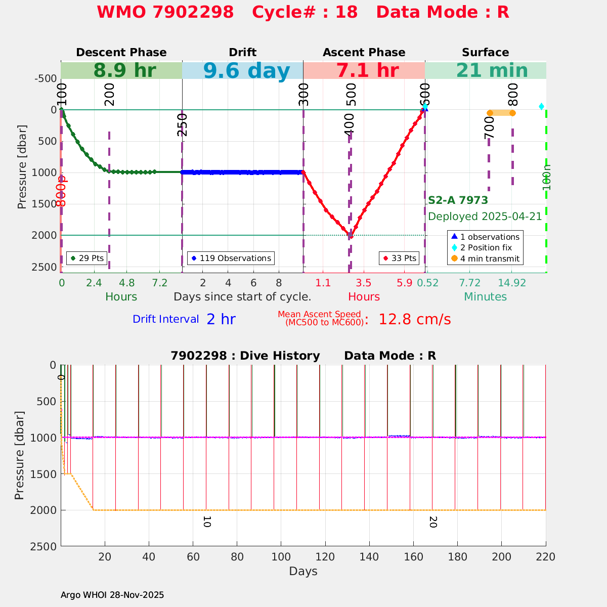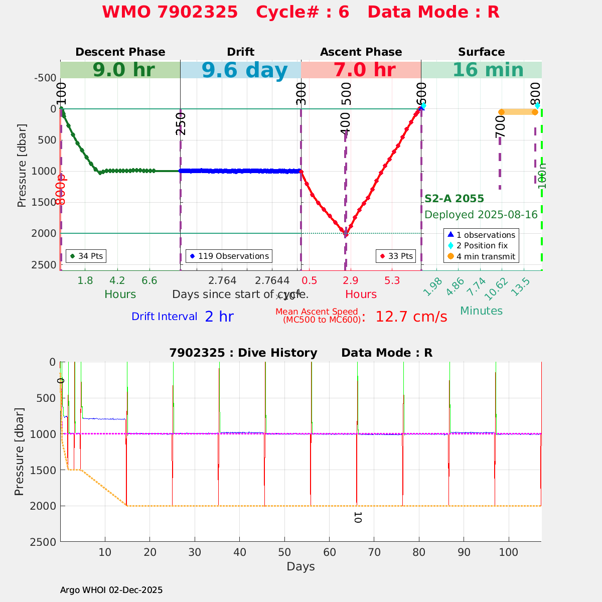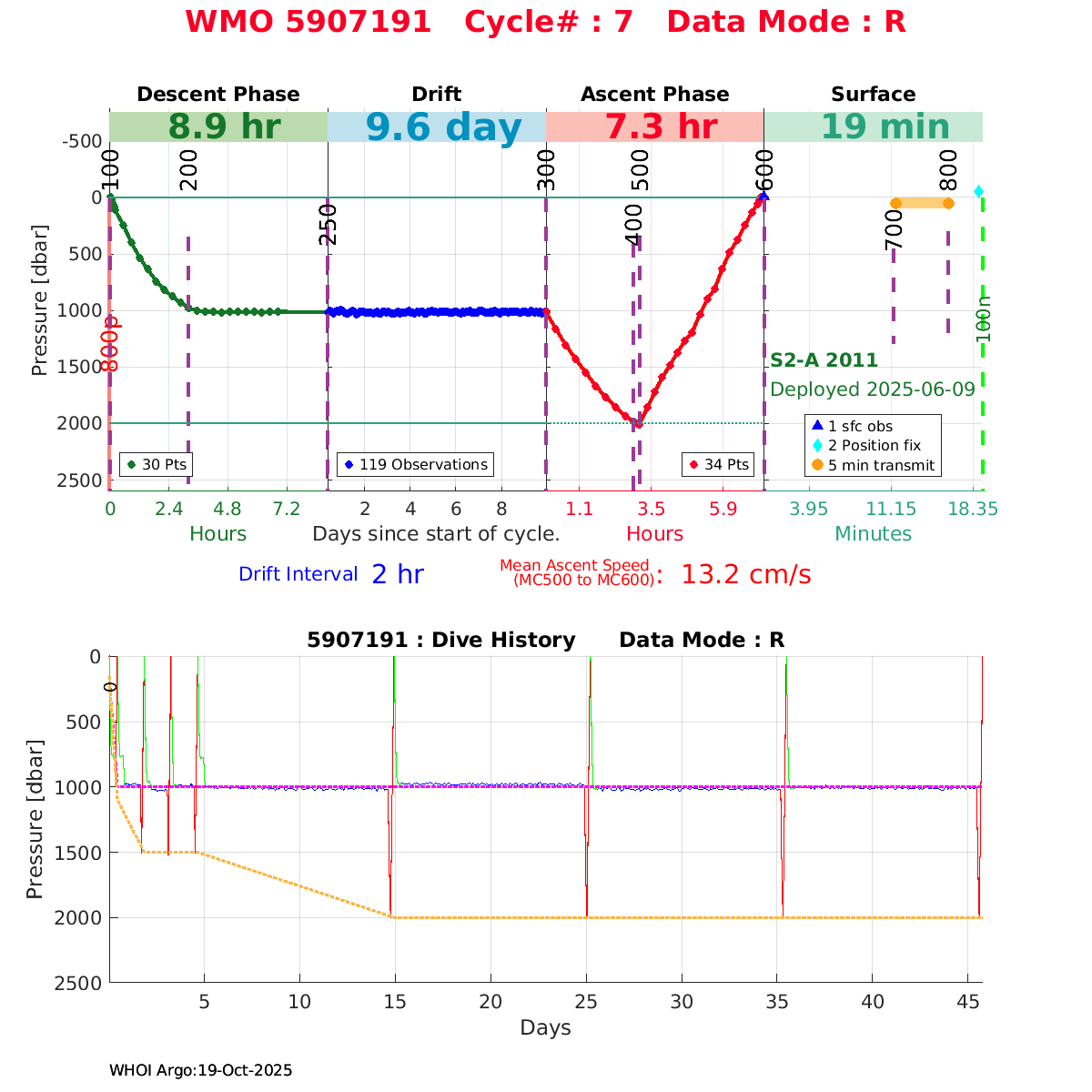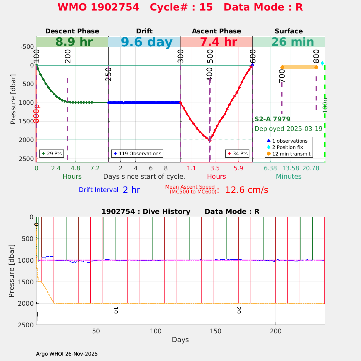 | WMO: #1902778 DAC: aoml PI: SUSAN WIJFFELS, STEVEN JAYNE, PELLE ROBBINS ALTO: #11682 RBR_ARGO3: #232487 RBR_PRES_A: #232487 Altimeter Comparison (IFREMER) EuroArgo Link | n/a | n/a | ![]() |