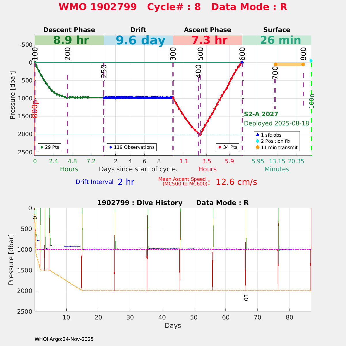 | WMO: #1902799 DAC: aoml PI: SUSAN WIJFFELS, STEVEN JAYNE, PELLE ROBBINS S2-A: #2027 SBE41CP: #19478 DRUCK_2900PSIA: #12547657 Altimeter Comparison (IFREMER) EuroArgo Link | n/a | n/a | ![]() |