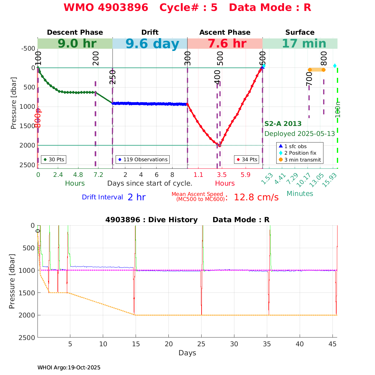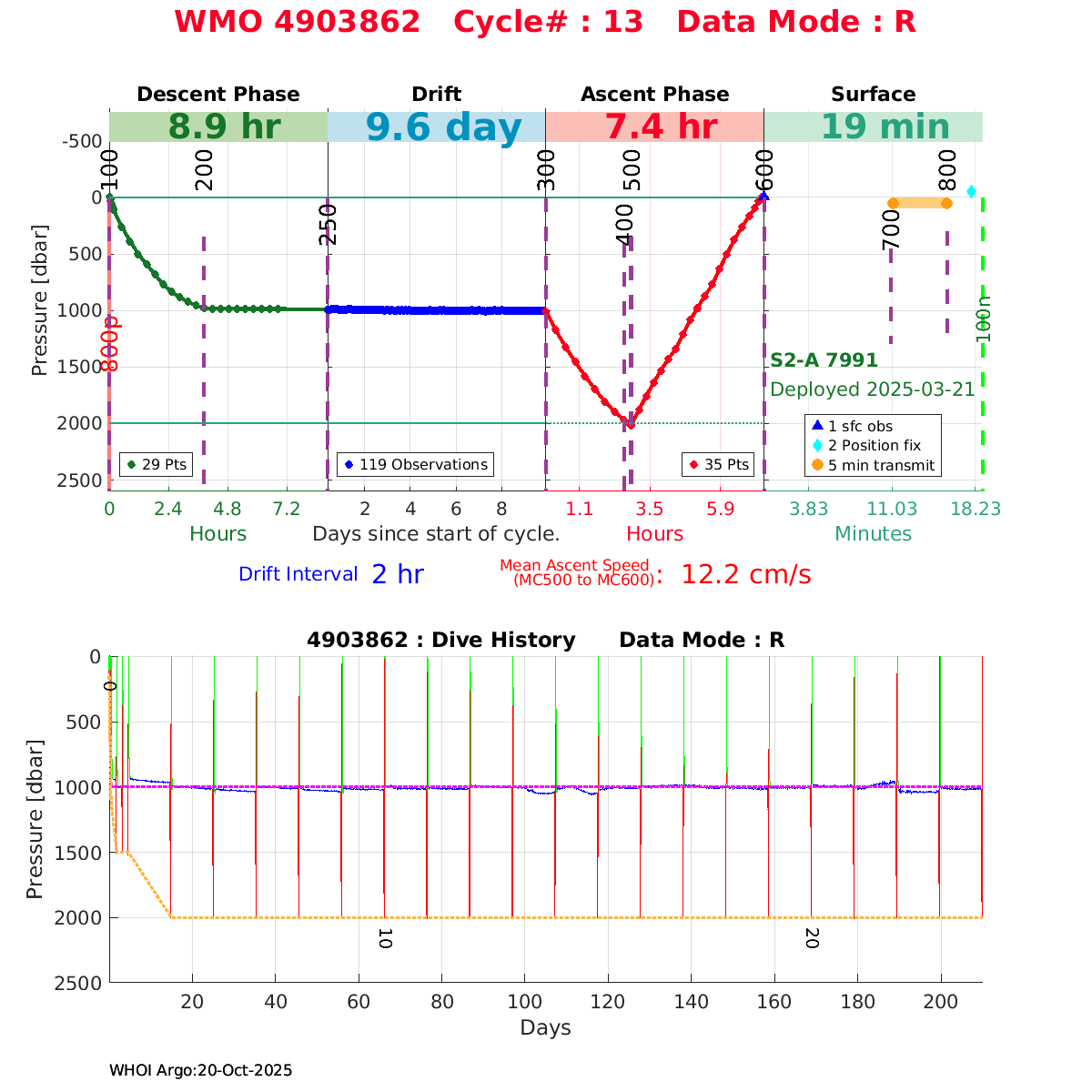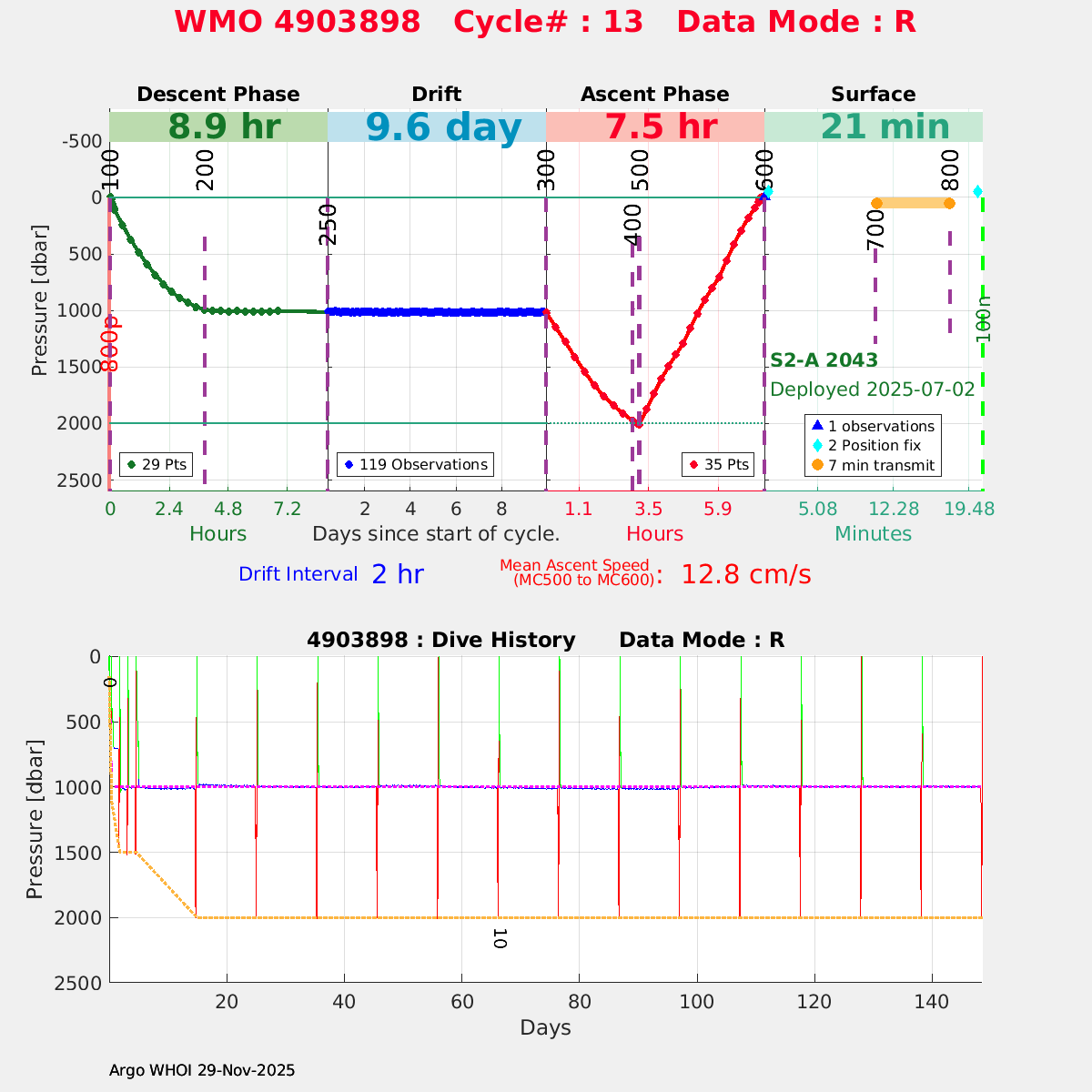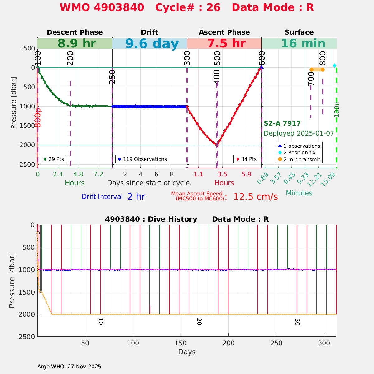 | WMO: #4903913 DAC: aoml PI: SUSAN WIJFFELS, DAVID NICHOLSON NAVIS_EBR: #1680 MCOMS_FLBBCD: #527 SBE41CP: #20638 DRUCK_2900PSIA: #12319387 MCOMS_FLBBCD: #527 SBE41CP: #20638 SBE83_OPTODE: #0176 SEAFET: #20376 MCOMS_FLBBCD: #527 Altimeter Comparison (IFREMER) EuroArgo Link | n/a | n/a | ![]() |
