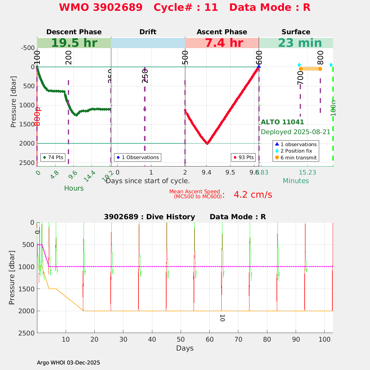 | WMO: #2904021 DAC: aoml PI: STEVEN JAYNE ALTO: #11487 RBR_ARGO3: #232493 RBR_PRES_A: #232493 Altimeter Comparison (IFREMER) EuroArgo Link | n/a | n/a | ![]() |