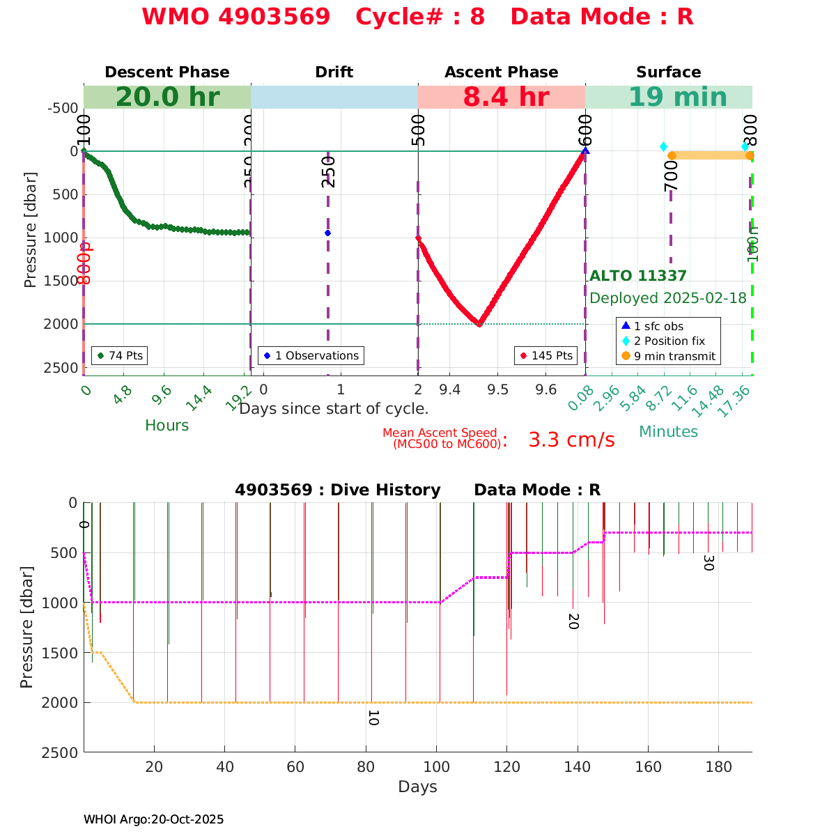 | WMO: #4903569 DAC: aoml PI: SUSAN WIJFFELS, STEVEN JAYNE, PELLE ROBBINS ALTO: #11337 RBR_ARGO3: #207905 RBR_PRES_A: #207905 Altimeter Comparison (IFREMER) EuroArgo Link | ![]() |