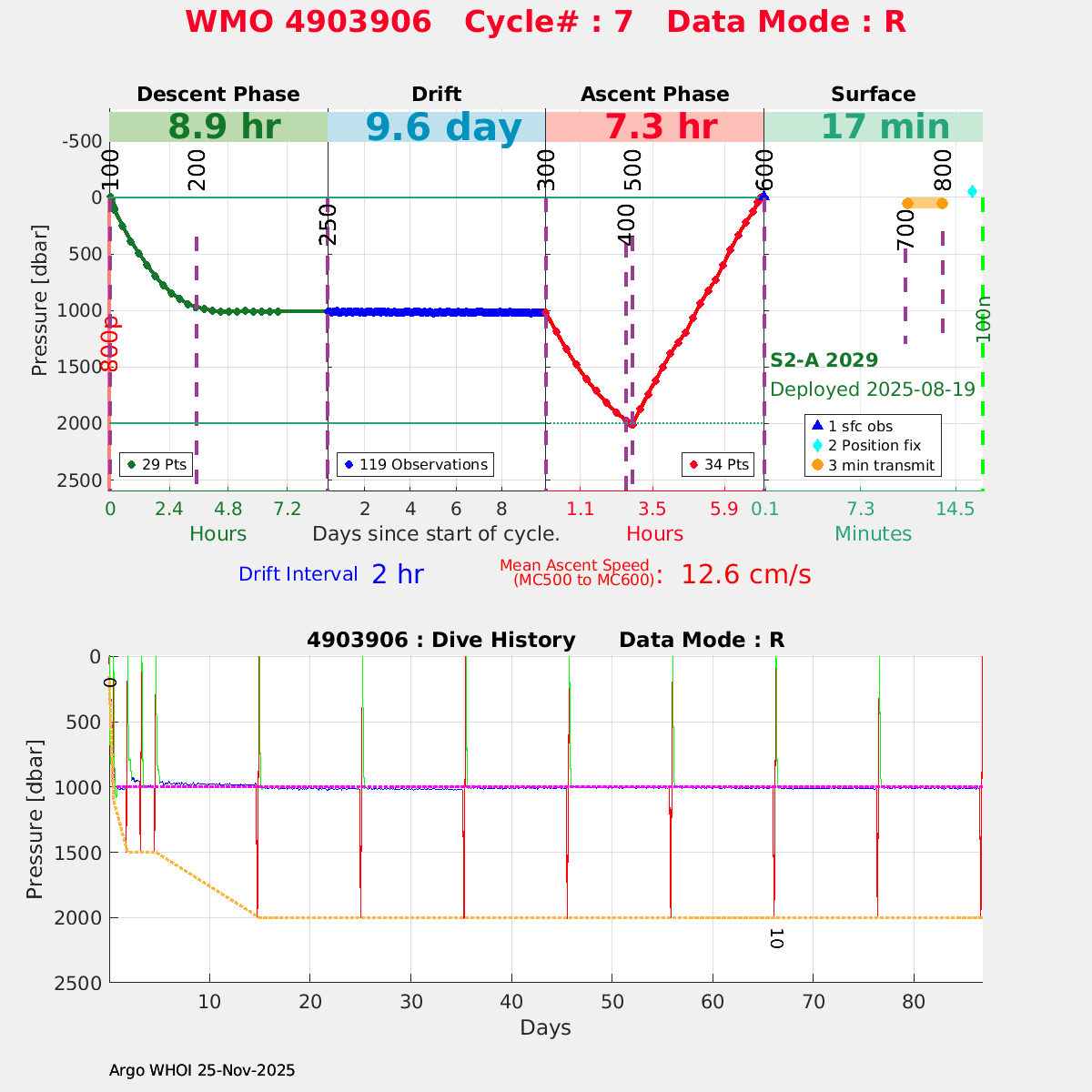 | WMO: #4903906 DAC: aoml PI: SUSAN WIJFFELS, STEVEN JAYNE, PELLE ROBBINS S2-A: #2029 SBE41CP: #20900 DRUCK_2900PSIA: #12863648 Altimeter Comparison (IFREMER) EuroArgo Link | n/a | n/a | ![]() |