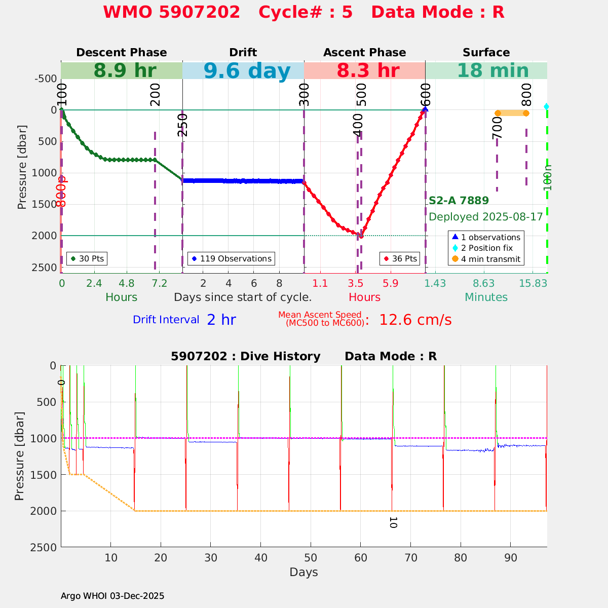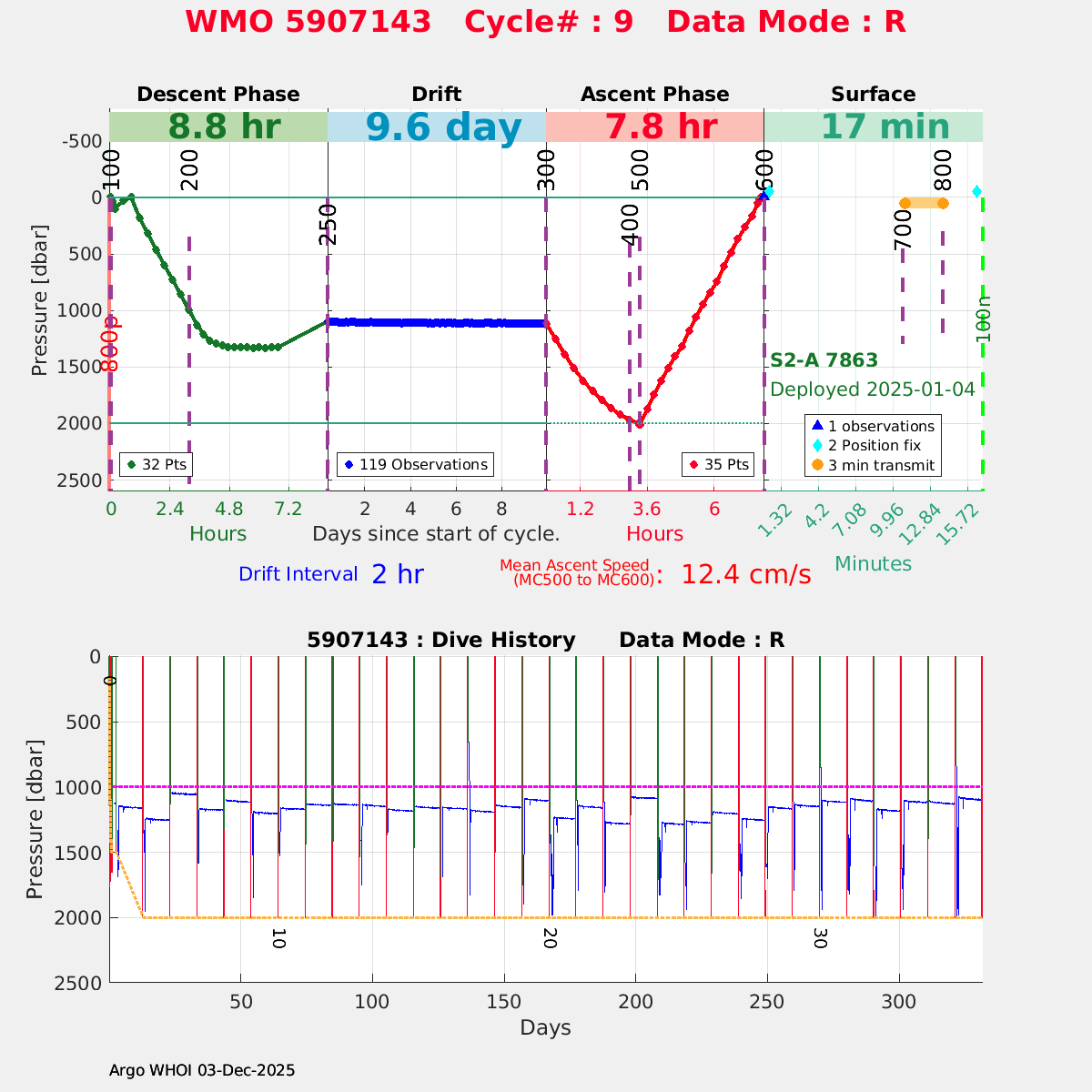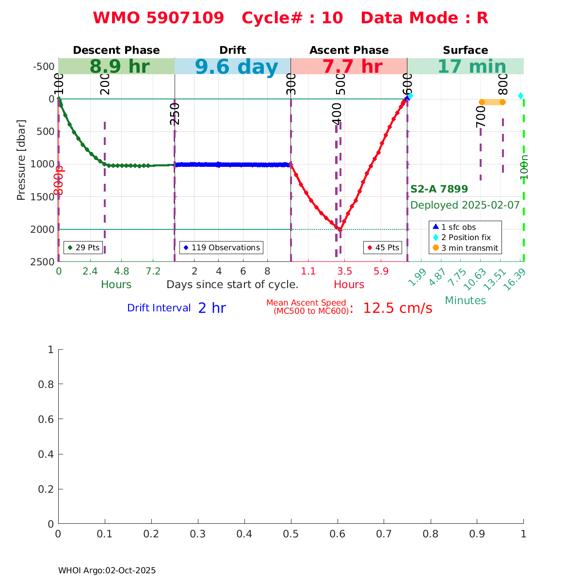 | WMO: #5907202 DAC: aoml PI: SUSAN WIJFFELS, STEVEN JAYNE, PELLE ROBBINS S2-A: #7889 SBE41CP: #19676 DRUCK_2900PSIA: #12405499 Altimeter Comparison (IFREMER) EuroArgo Link | n/a | n/a | ![]() |