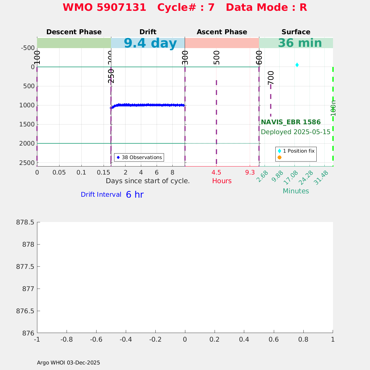 | WMO: #5907198 DAC: aoml PI: STEVEN JAYNE ALTO: #11486 RBR_ARGO3: #232854 RBR_PRES_A: #232854 Altimeter Comparison (IFREMER) EuroArgo Link | n/a | n/a | ![]() |