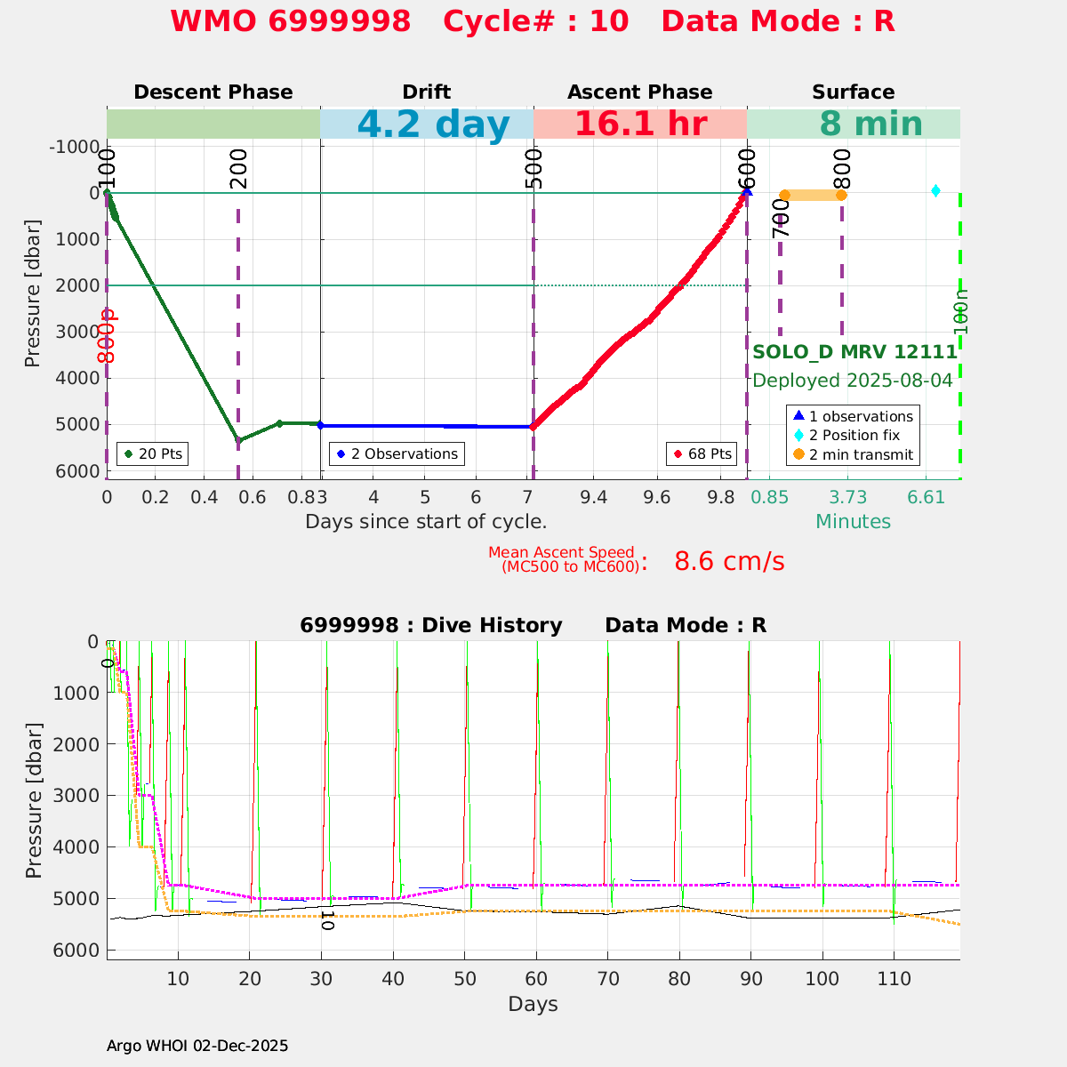 | WMO: #5907212 DAC: aoml PI: SUSAN WIJFFELS, DAVID NICHOLSON SOLO BGC MRV: #4008 DRUCK_2900PSIA: #12284815 SBE41CP: #18540 ECO_FLBBCD: #7702 OCR504_ICSW: #2307 SUNA_V2: #2038 SBE83_OPTODE: #0007 SEAFET: #12101 Altimeter Comparison (IFREMER) EuroArgo Link | n/a | n/a | ![]() |