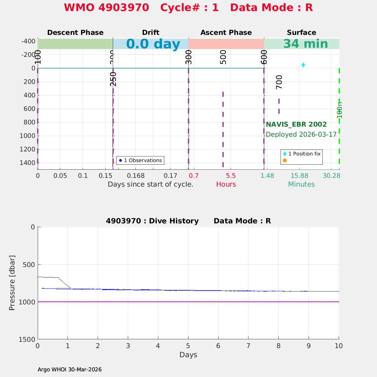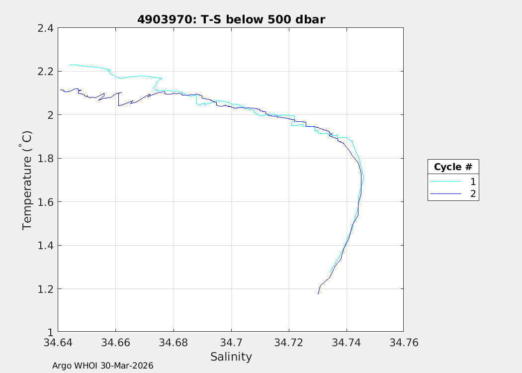 | WMO: #4903970 DAC: aoml PI: SUSAN WIJFFELS, DAVID NICHOLSON NAVIS_EBR: #2002 DRUCK_2900PSIA: #13103295 SBE41CP: #21410 MCOMS_FLBBCD: #560 OCR504_ICSW: #2633 SUNA_V2: #2478 SBE83_OPTODE: #0202 SEAFET: #726-20574 Altimeter Comparison (IFREMER) EuroArgo Link | n/a | n/a | ![]() |