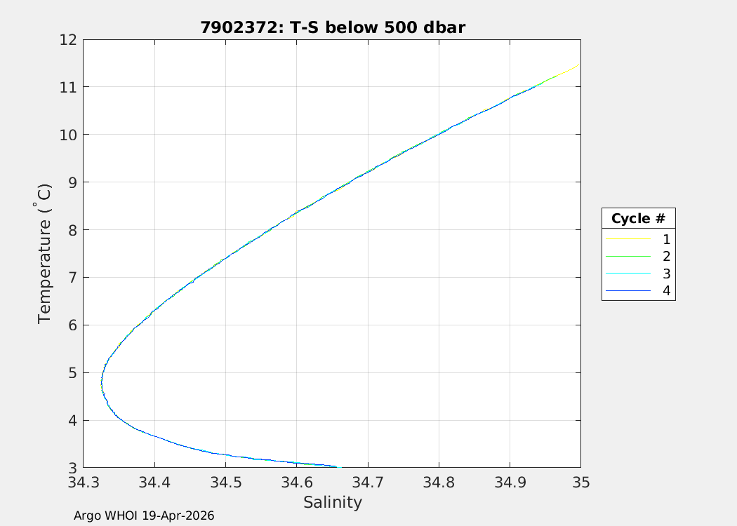 | WMO: #3902744 DAC: aoml PI: SUSAN WIJFFELS, STEVEN JAYNE, PELLE ROBBINS SOLO_D MRV: #12116 SBE61: #6170 KISTLER_10153PSIA: #6284346 Altimeter Comparison (IFREMER) EuroArgo Link | n/a | n/a | ![]() |