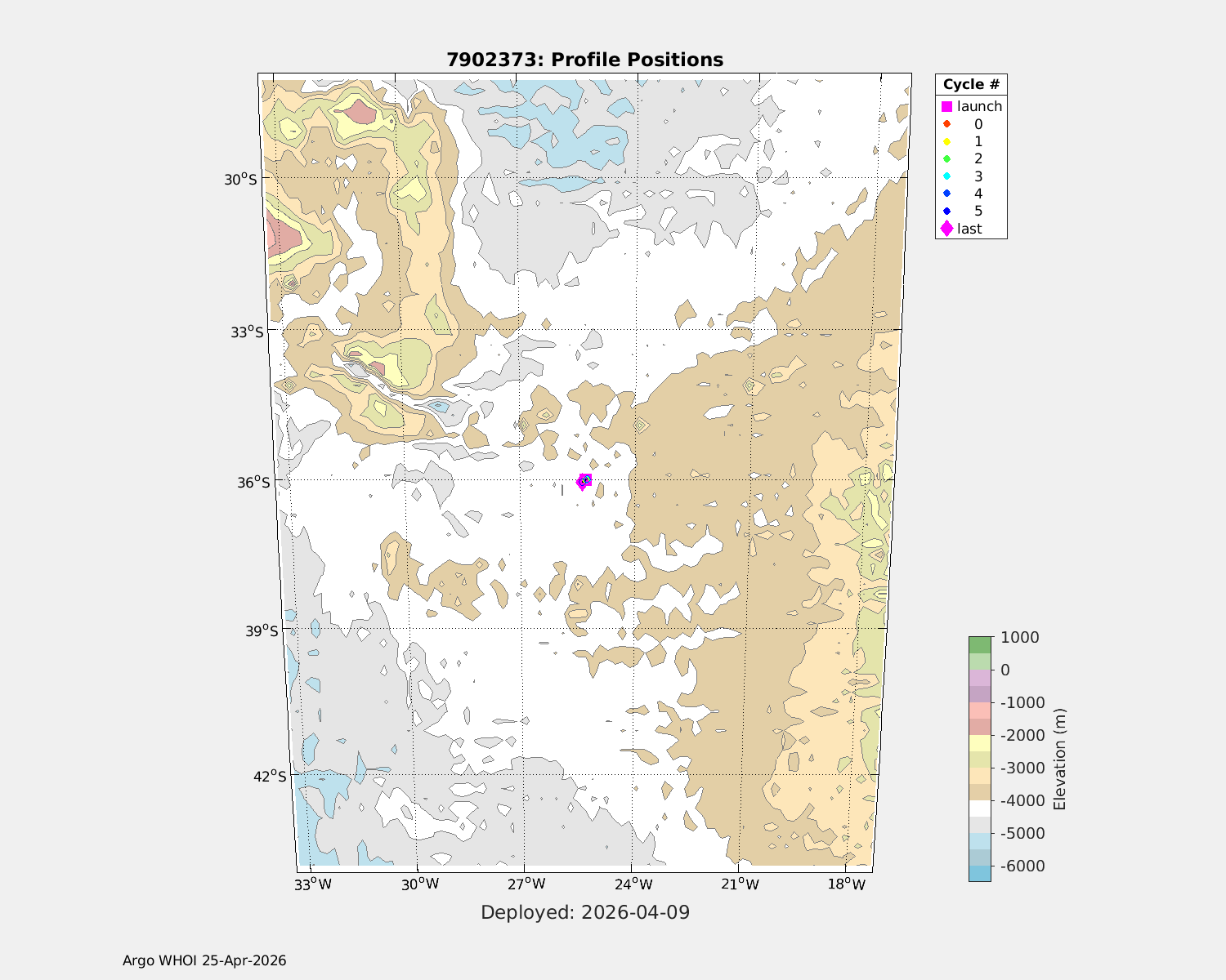 | WMO: #7902380 DAC: aoml PI: SUSAN WIJFFELS, DAVID NICHOLSON NAVIS_EBR: #1760 DRUCK_2900PSIA: #13134458 SBE41CP: #21469 SEAFET: #726-20605 MCOMS_FLBBCD: #558 SUNA_V2: #2482 SBE83_OPTODE: #0234 Altimeter Comparison (IFREMER) EuroArgo Link | n/a | n/a | ![]() |