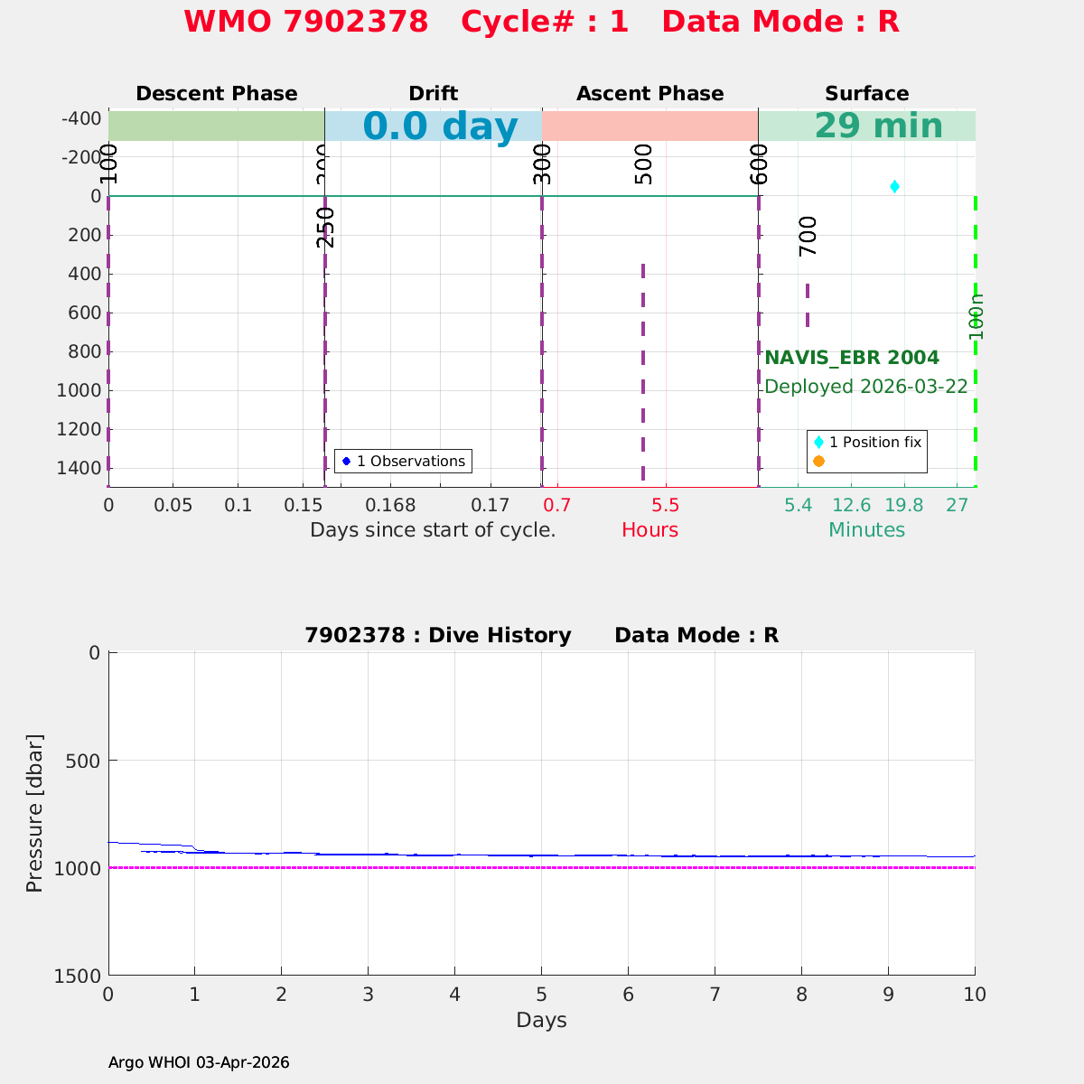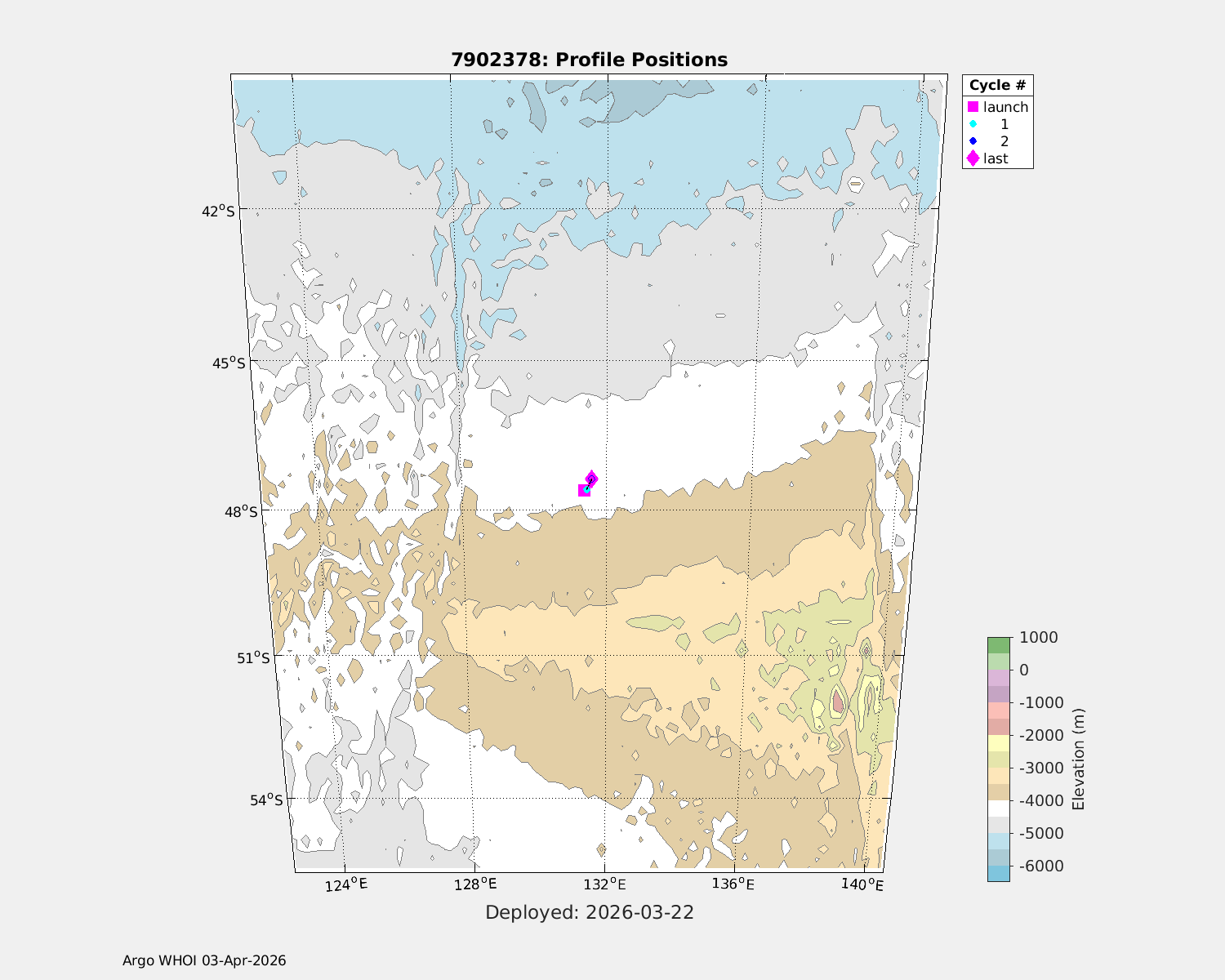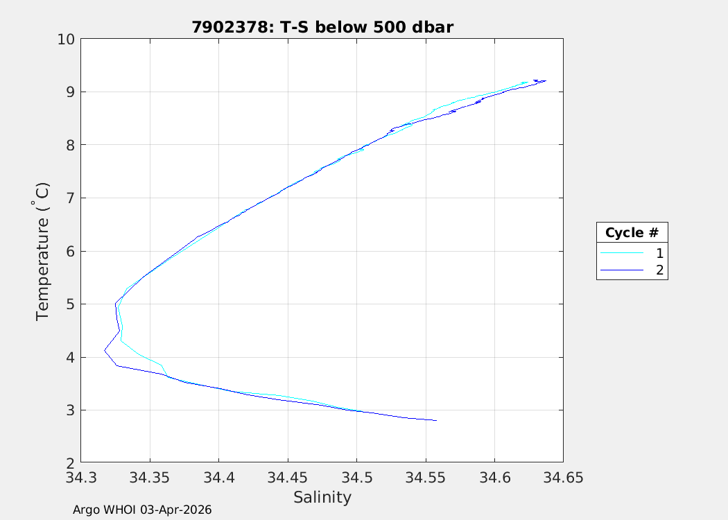 | WMO: #7902378 DAC: aoml PI: SUSAN WIJFFELS, DAVID NICHOLSON NAVIS_EBR: #2004 DRUCK_2900PSIA: #13131707 SBE41CP: #21316 MCOMS_FLBBCD: #566 OCR504_ICSW: #2644 SUNA_V2: #2498 SBE83_OPTODE: #0220 SEAFET: #726-20566 Altimeter Comparison (IFREMER) EuroArgo Link | n/a | n/a | ![]() |