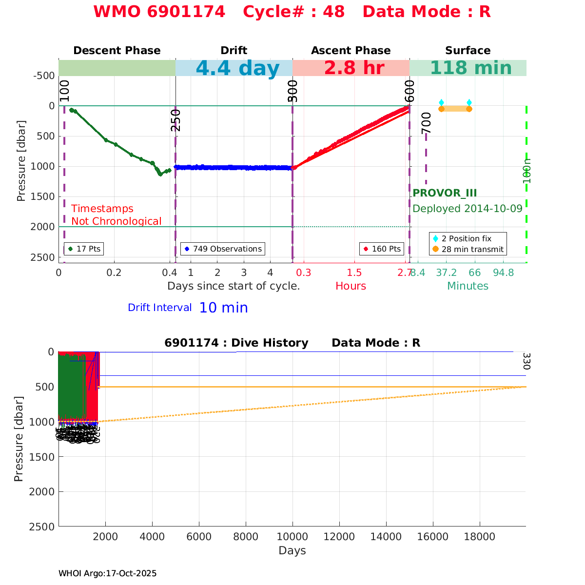 | WMO: #6901171 DAC: bodc PI: Jon Turton APEX: #7012 DRUCK_2900PSIA: #3868229 SBE41_V3: #6535 Altimeter Comparison (IFREMER) EuroArgo Link | ![]() |