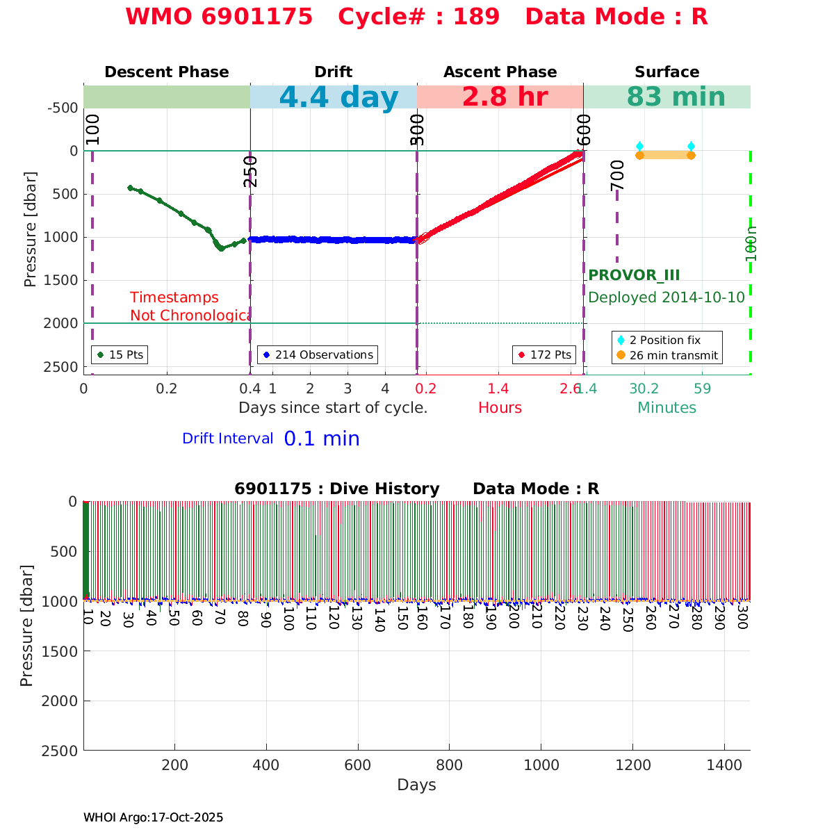 | WMO: #3901493 DAC: bodc PI: Jon Turton APEX: #6241 KISTLER_2900PSIA: #2077414 SBE41: #5888 Altimeter Comparison (IFREMER) EuroArgo Link | ![]() |