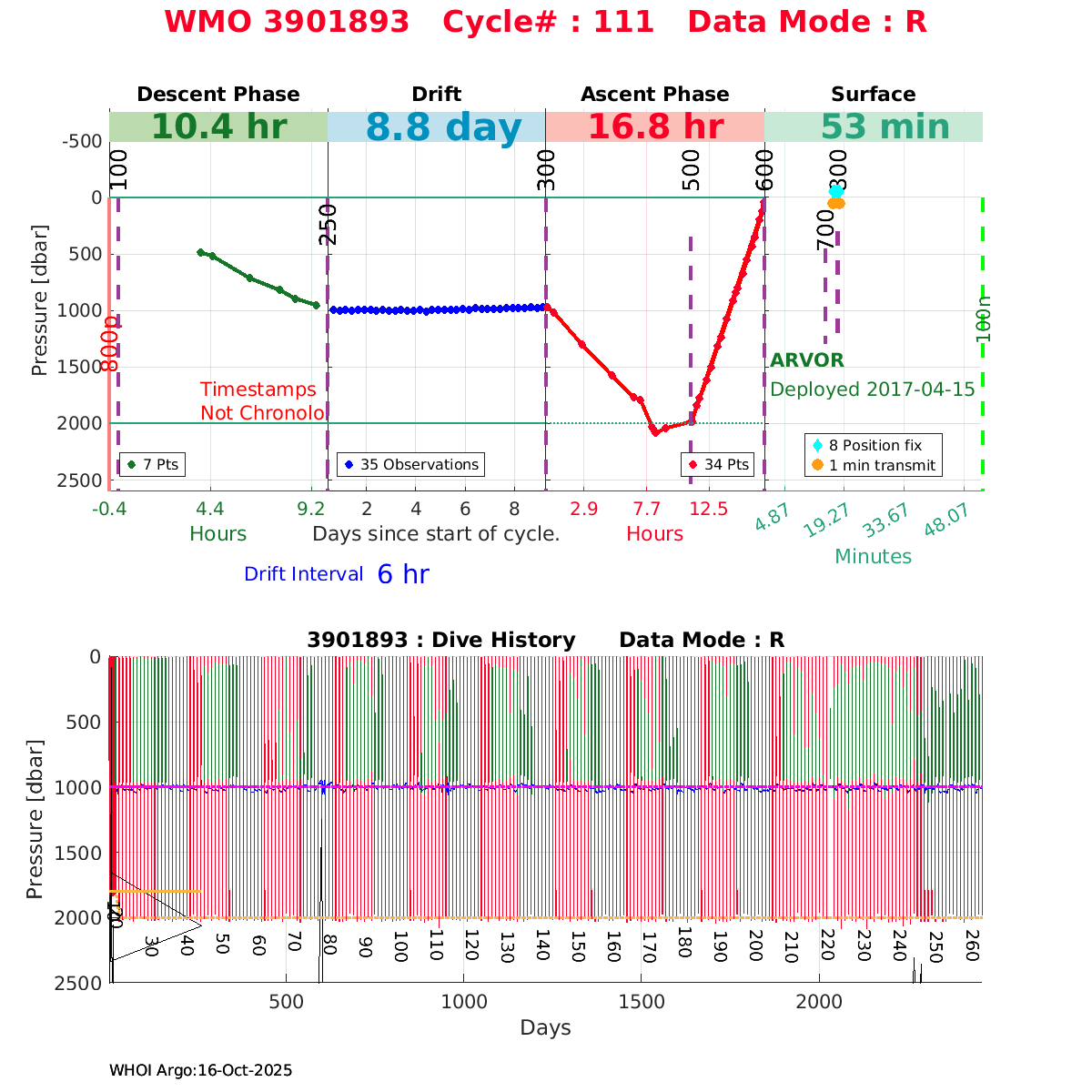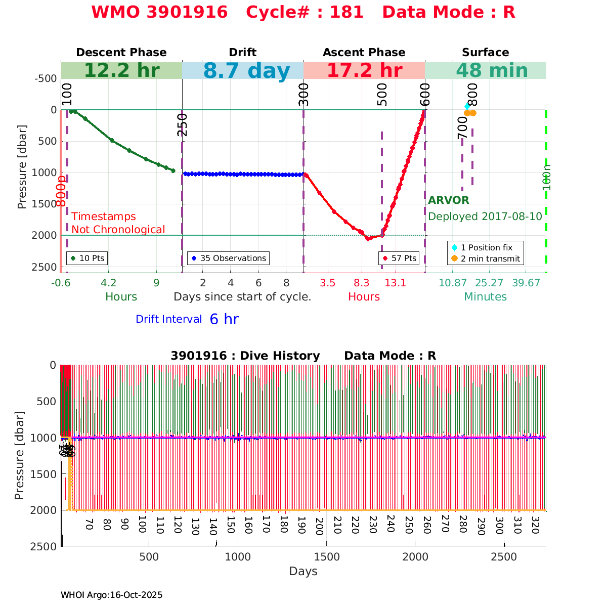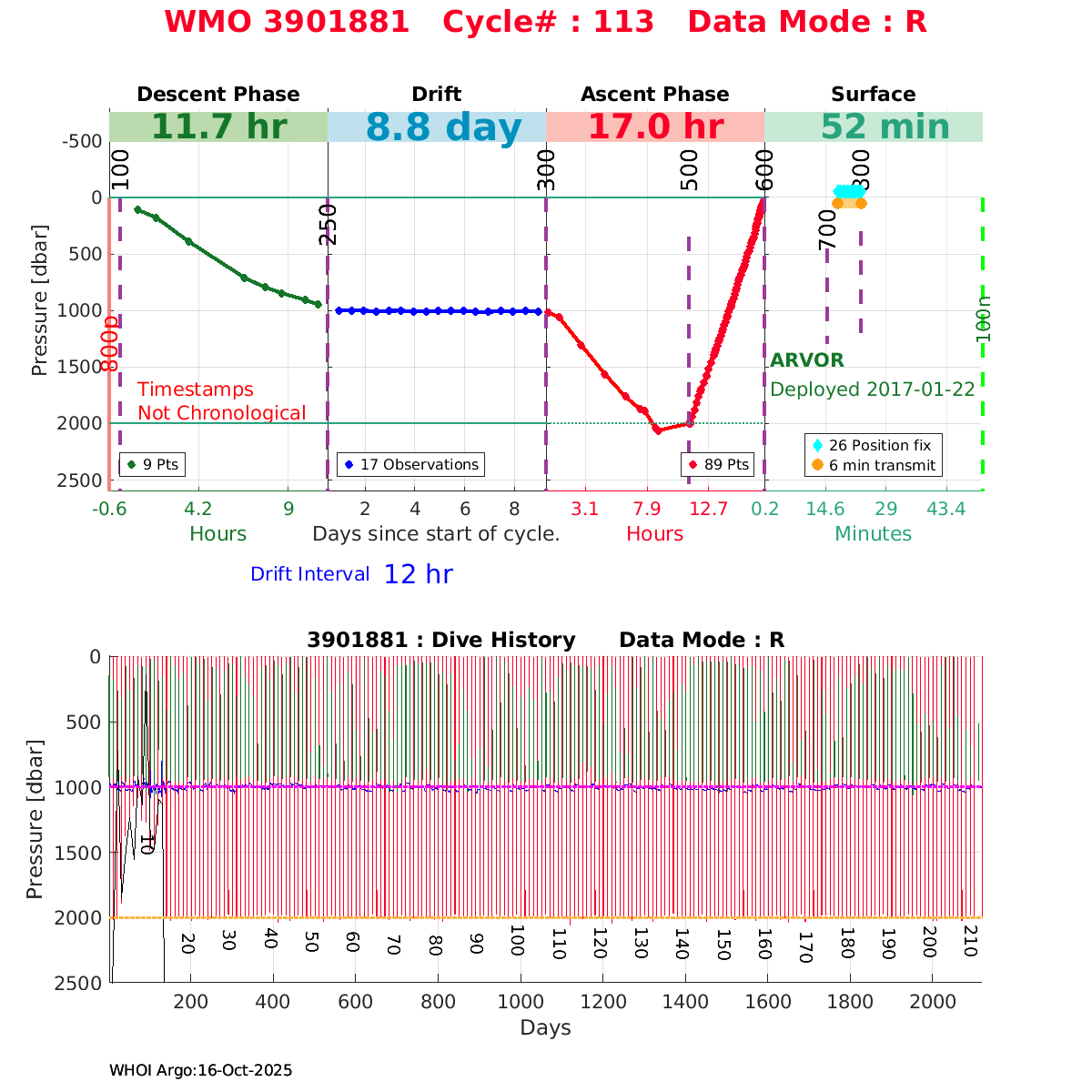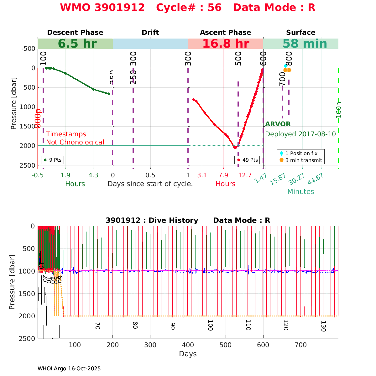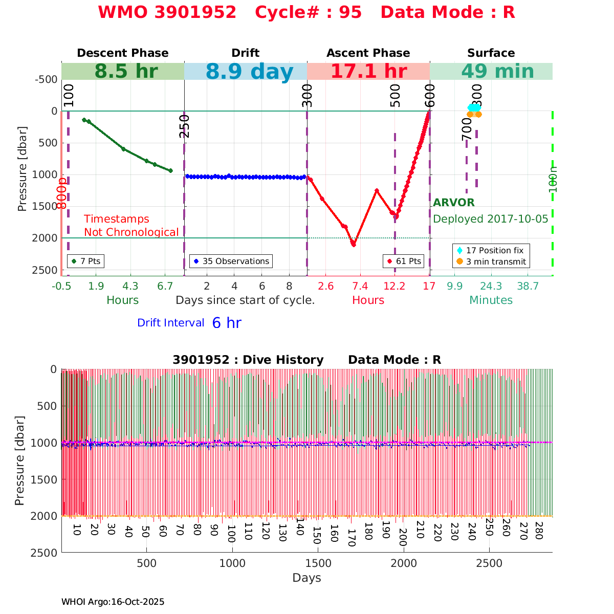 | WMO: #1901881 DAC: bodc PI: Jon Turton APEX: #7579 DRUCK_2900PSIA: #10083576 SBE41: #7732 Altimeter Comparison (IFREMER) EuroArgo Link | ![]() |