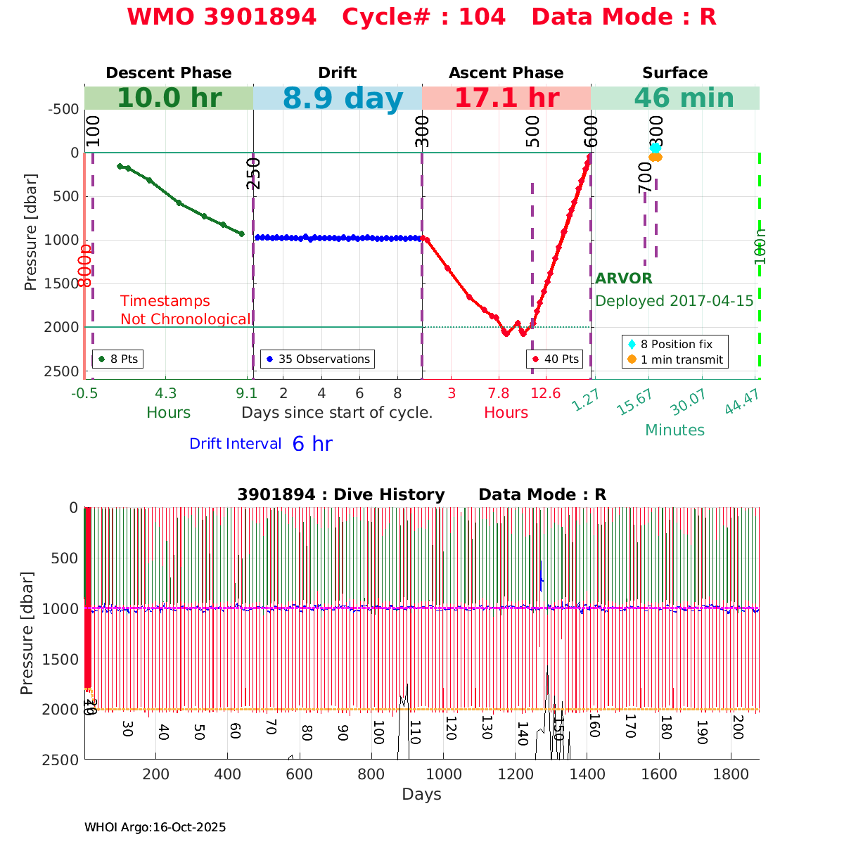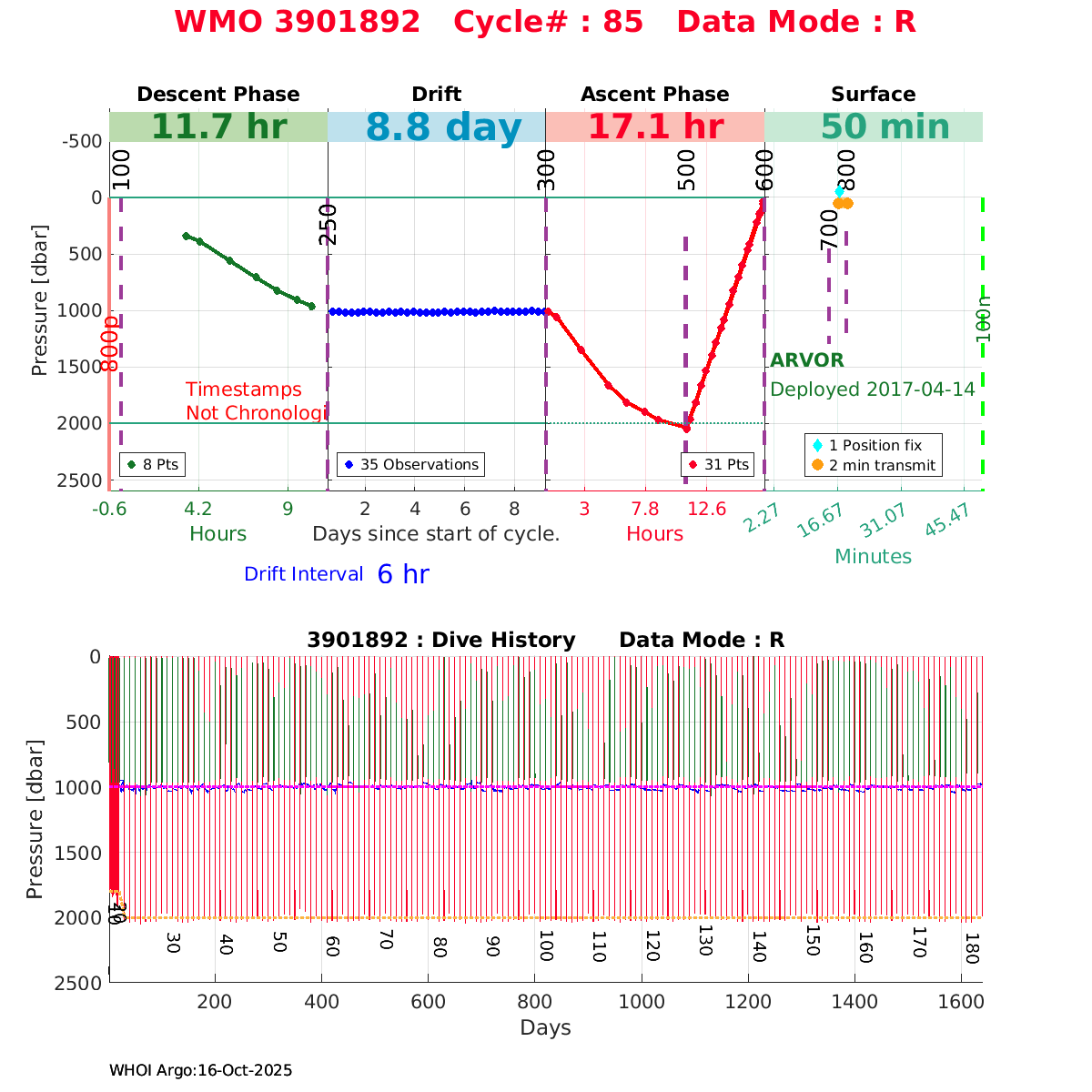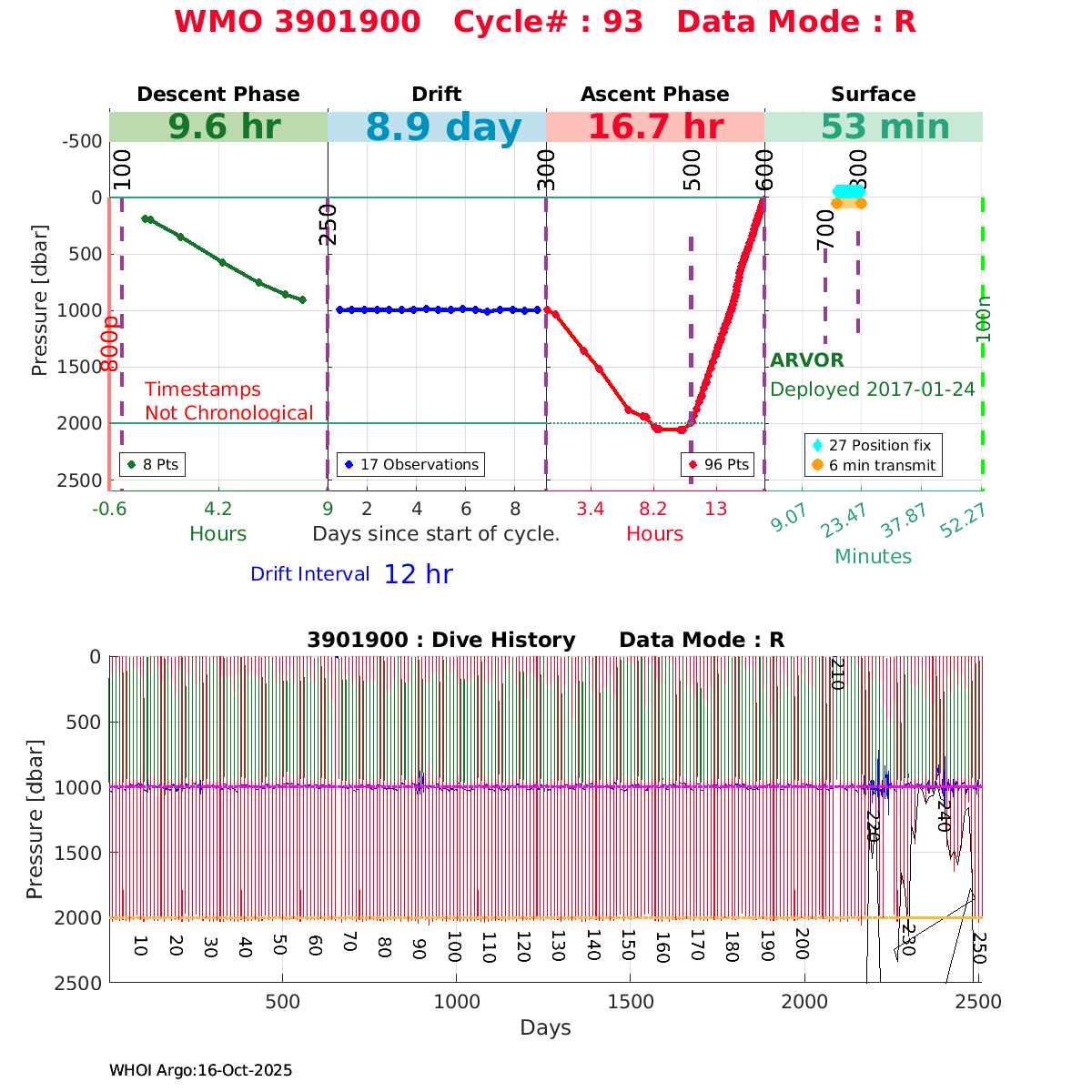 | WMO: #6901200 DAC: bodc PI: Jon Turton APEX: #8071 DRUCK_2900PSIA: #10444175 SBE41: #9359 Altimeter Comparison (IFREMER) EuroArgo Link | ![]() |