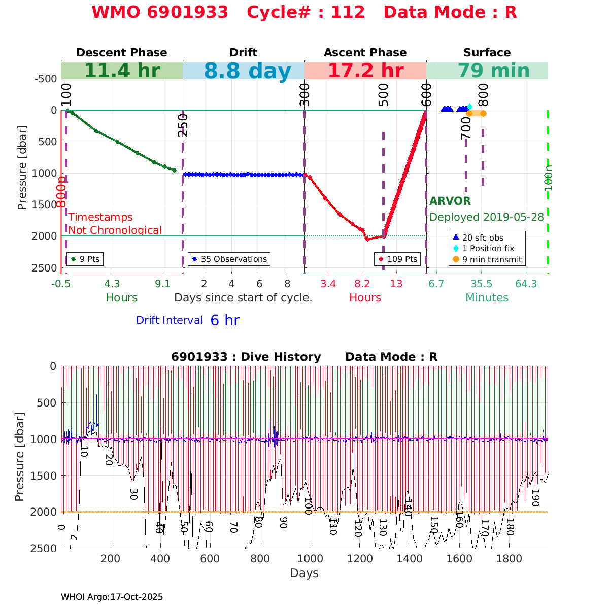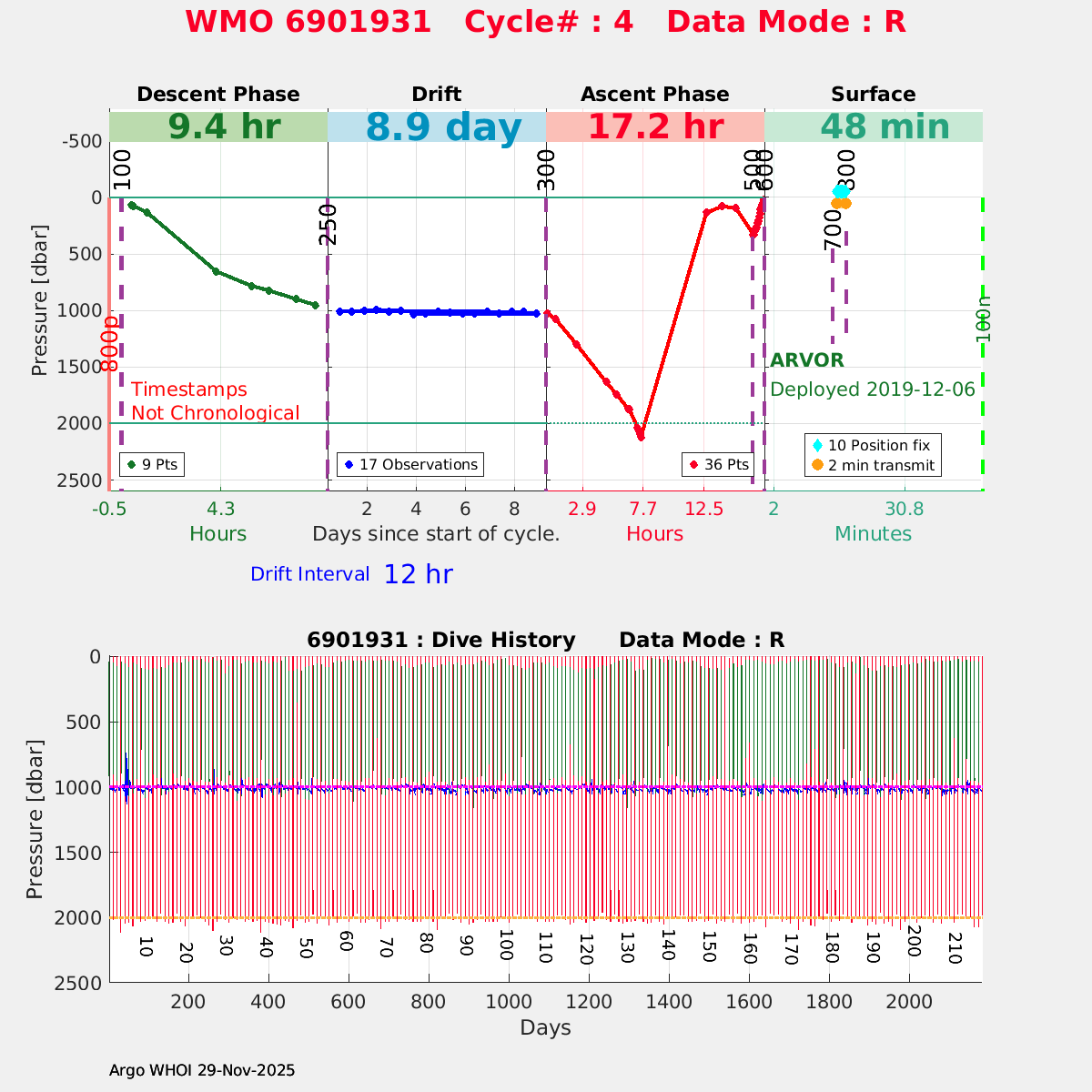 | WMO: #1901912 DAC: bodc PI: Jon Turton APEX: #3904 KISTLER_2900PSIA: #2096291 SBE41: #4000 Altimeter Comparison (IFREMER) EuroArgo Link | ![]() |