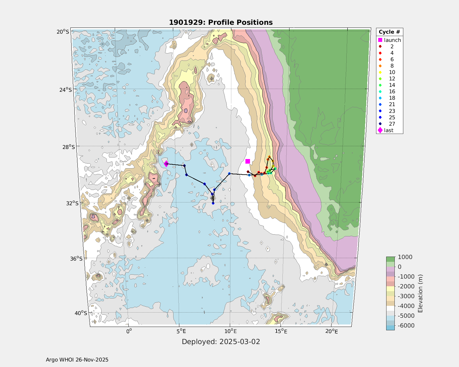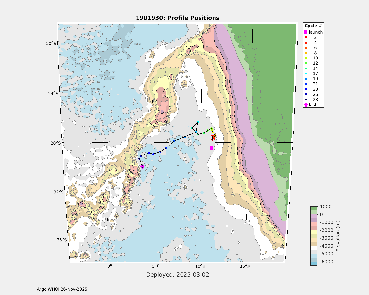 | WMO: #1901930 DAC: bodc PI: Jon Turton APEX: #8470 DRUCK_2900PSIA: #10799109 SBE41CP_V7.2.5: #10612 Altimeter Comparison (IFREMER) EuroArgo Link | ![]() |