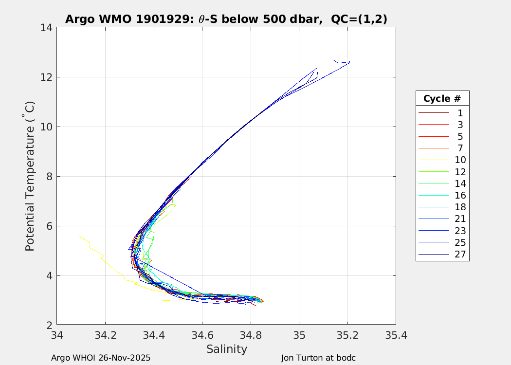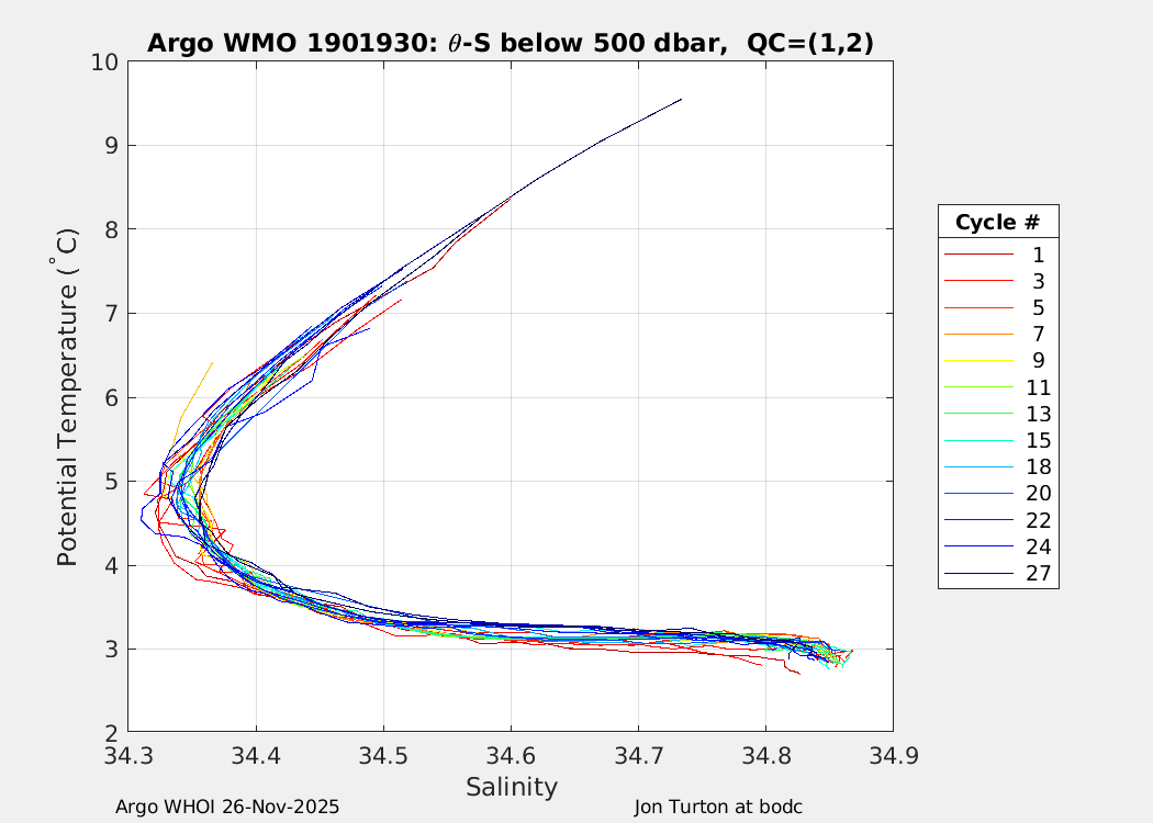 | WMO: #1902114 DAC: bodc PI: Jon Turton APEX: #9631 DRUCK_2900PSIA: #12061086 SBE41CP: #17150 Altimeter Comparison (IFREMER) EuroArgo Link | ![]() |