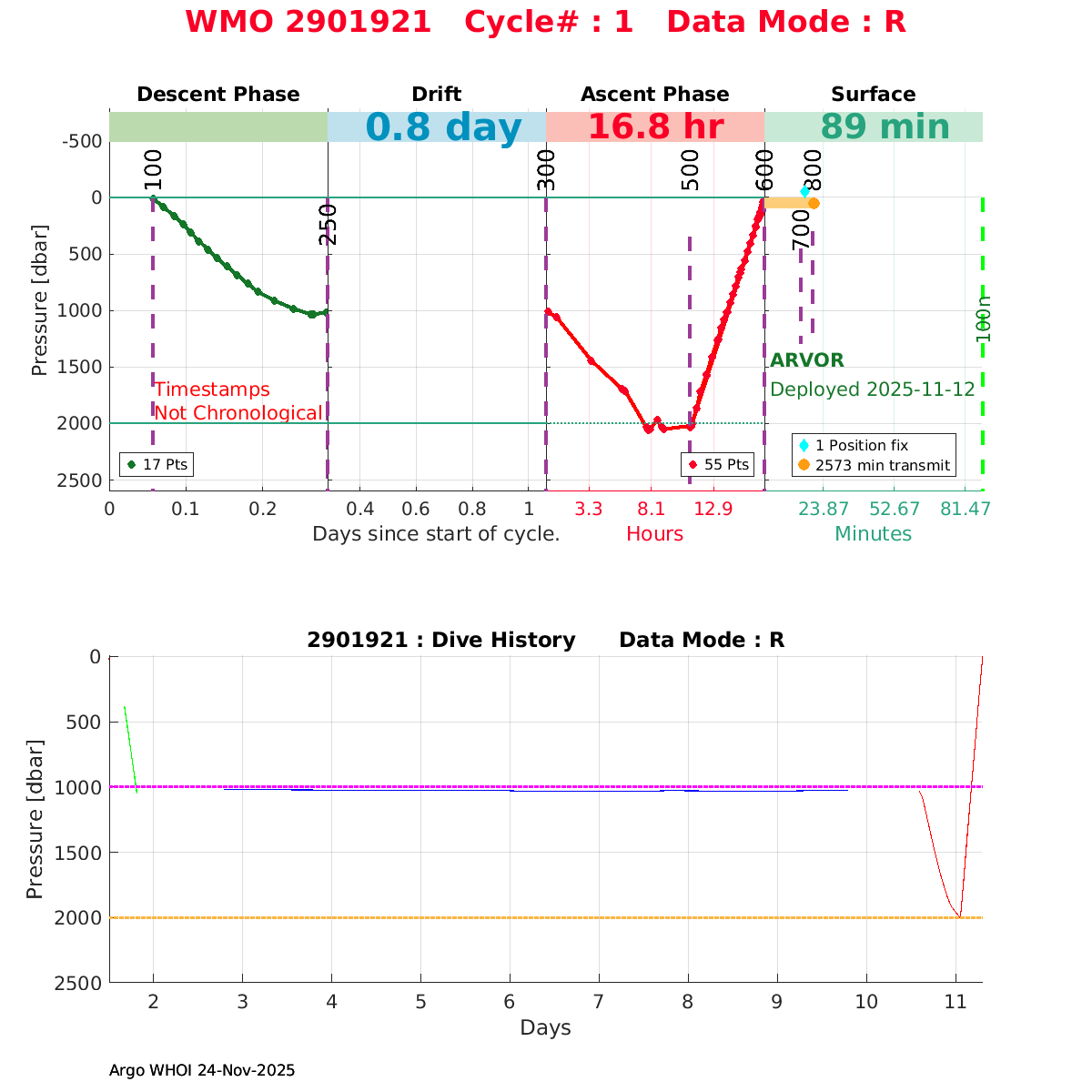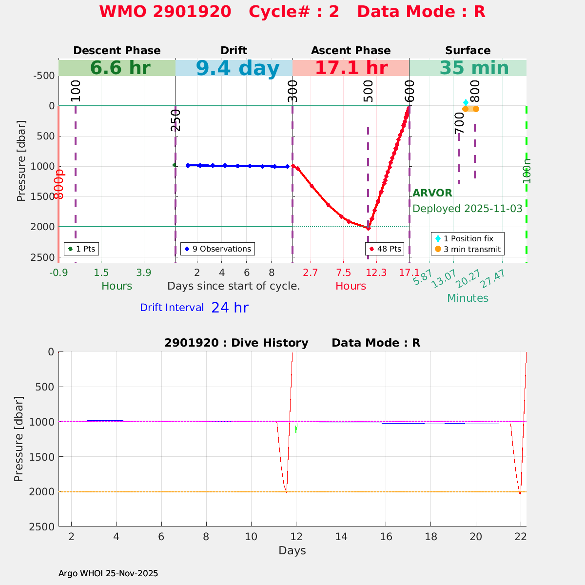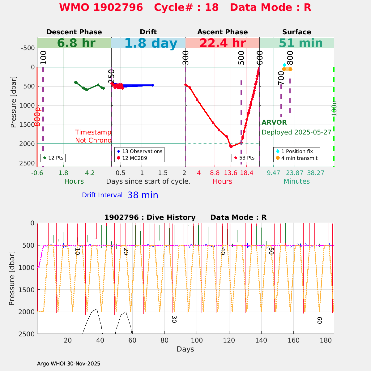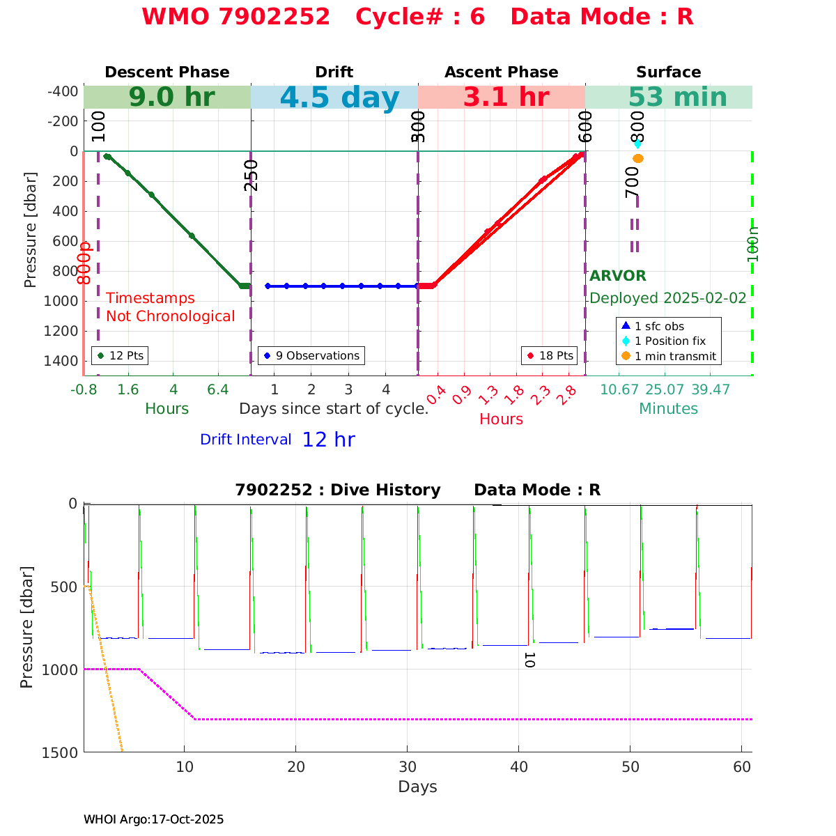 | WMO: #6990670 DAC: bodc PI: Nathan Briggs PROVOR_V: # DRUCK_2900PSIA: #12311986 SBE41CP_V7.2.5: #18495 AANDERAA_OPTODE_4330: #4264 SATLANTIC_OCR504_ICSW: #2419 ECO_FLBBCD: #8607 SEAFET: #11967 SUNA_V2: #2000 Altimeter Comparison (IFREMER) EuroArgo Link | ![]() |