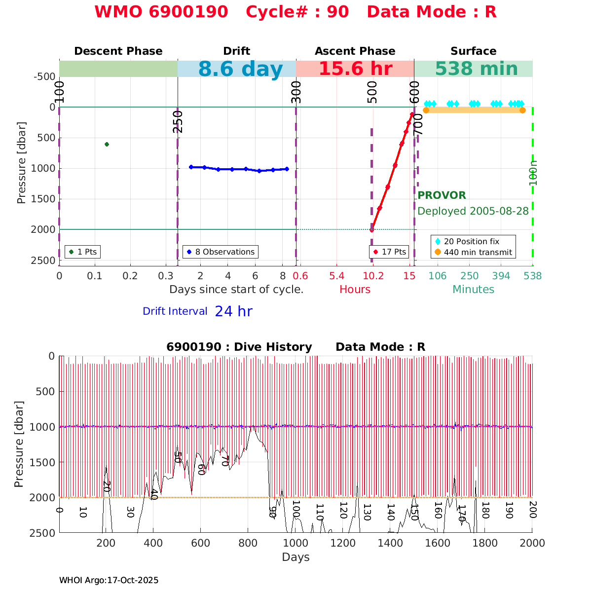 | WMO: #6900263 DAC: coriolis PI: Birgit KLEIN APEX: #2150 DRUCK_2900PSIA: #7841 SBE41: #n/a Altimeter Comparison (IFREMER) EuroArgo Link | ![]() |