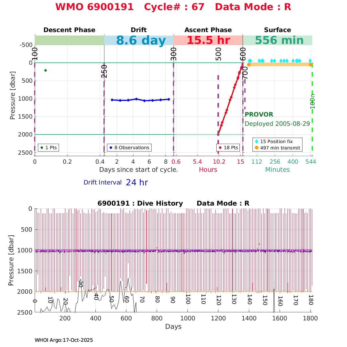 | WMO: #6900191 DAC: coriolis PI: Virginie THIERRY PROVOR: # FLOATCLOCK: # SBE: #n/a SBE41CP: #n/a Altimeter Comparison (IFREMER) EuroArgo Link | ![]() |